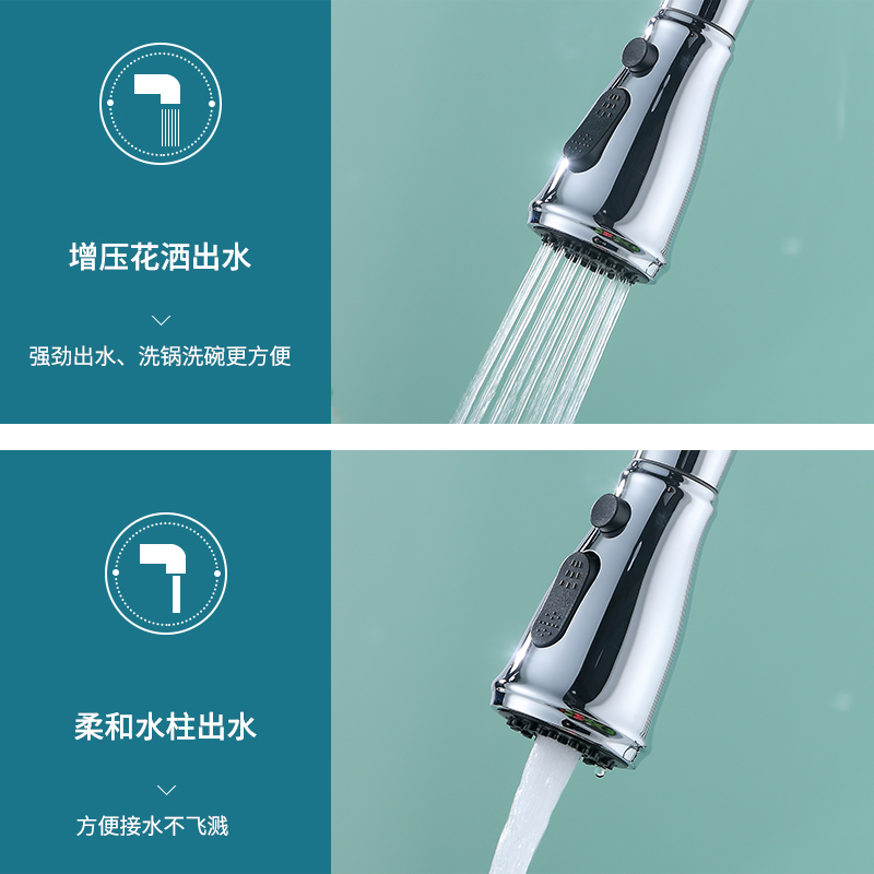 采用优良陶瓷阀芯,防滴防漏,60cm广角抽拉,覆盖范围更广,清洗不受限,能旋转的水龙头,让出水点不在单一固定,使用起来更便捷,自由控温,洗漱收放自如。