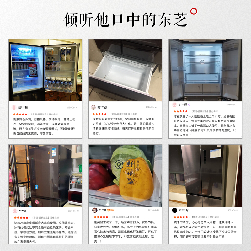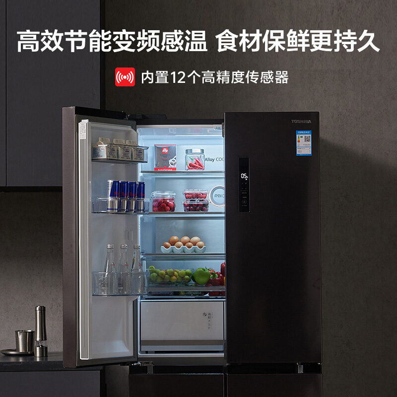 东芝 雾语系列 PM137采用了创新雾化保鲜技术,星级料理鲜科技,Pure BI0'空间净味,陶瓷净味粒子高效败附分解异味,同时镀上Ag+离子催化剂,杀菌除臭率≥9.9%。采用松下原装高效变频压缩机,动力强劲更静音;搭载变频风机和变频压缩机,达到精准控温、控湿,实现生态养鲜。航母级548L鲜,多分区储鲜;御鉴绸缎灰,每一层打磨皆为美而生。独立双循环系统,冷藏、冷冻分别使用两套蒸发器,互不串味,温度湿度控制更加精准。