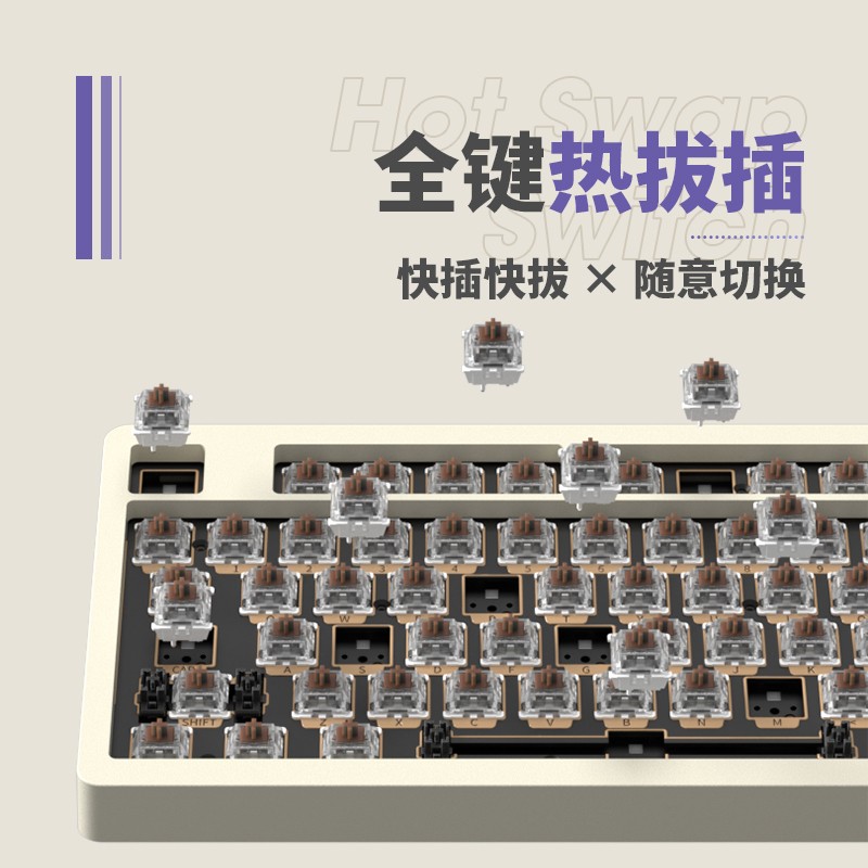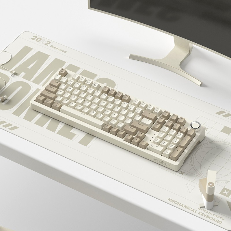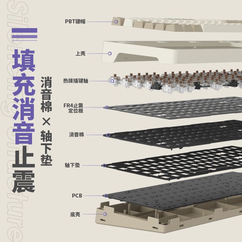贝戋马户 RS2采用Gasket Pro结构,配合FR4玻纤定位板,以及消音棉加轴下垫,到来软弹手感的同时,有效减小空腔音。标配佳达隆出厂自润轴体和双色注塑PBT键帽,可全键热插拔。内置3000mAh,支持蓝牙、无线、有线三模连接。98配列设计,保留数字键盘,加入旋钮,功能更加齐全。