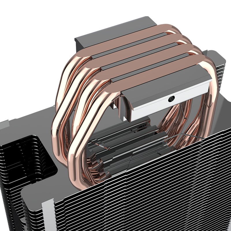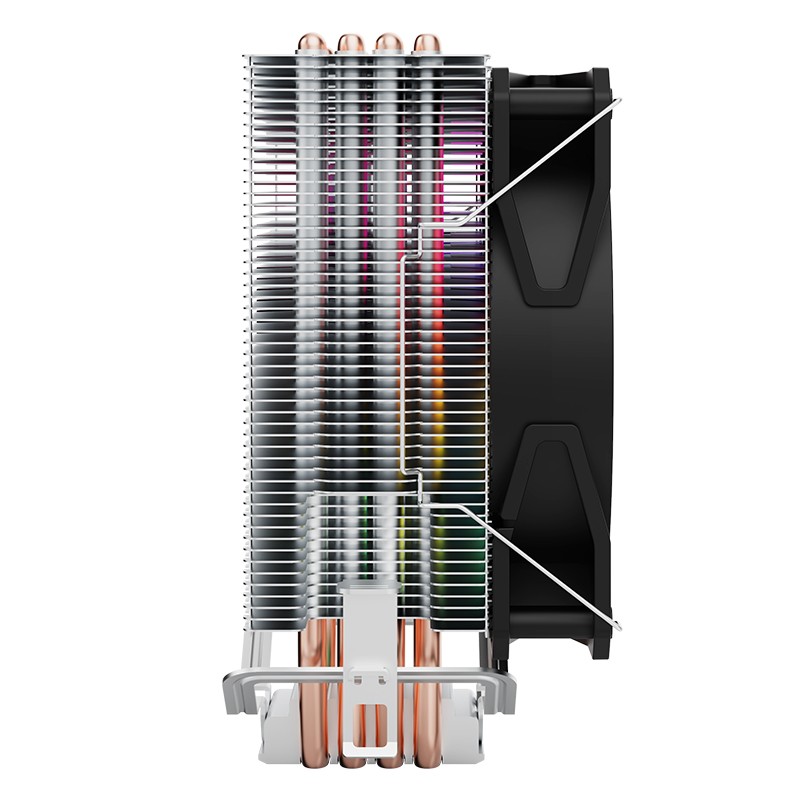 水星S400 CPU散热风扇支持120mm PWM智能温控调节风速,增加使用寿命的同时降低风噪。乐扣风扇匡设计,不易变形。配有高效的纯铜四热管、大面积0.4mm的铝鳍片,穿FIN工艺设计,高效散热。支持AMD、Intel双平台,散热器高158mm。