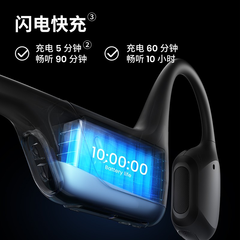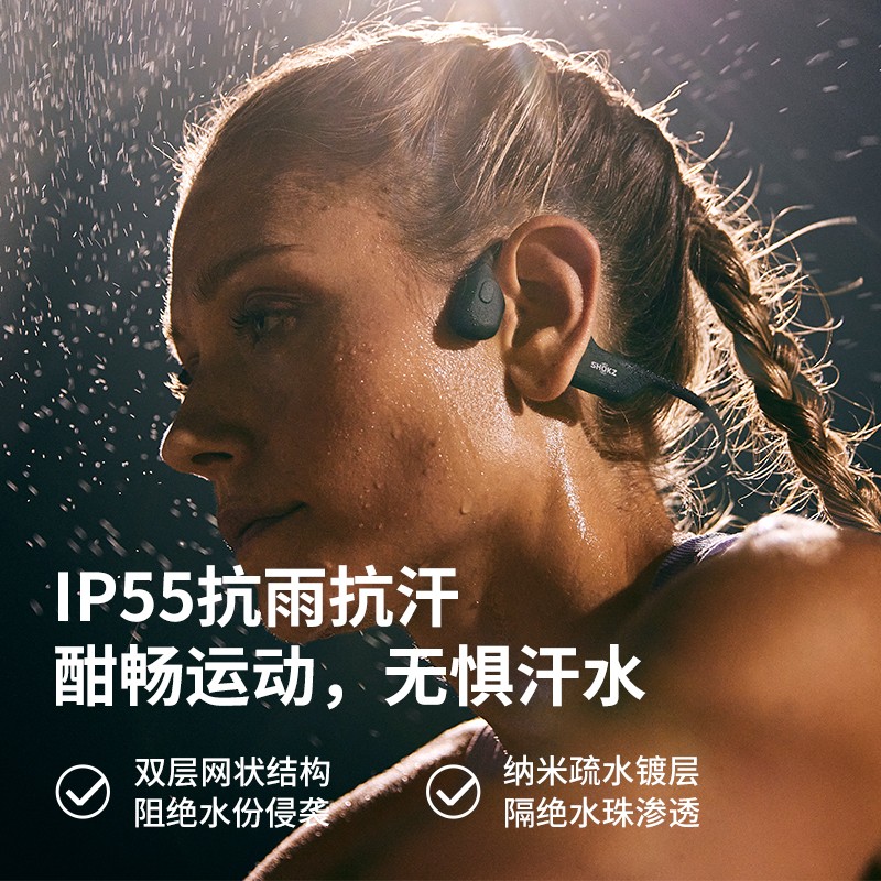 舒适无负担训练更畅快,开放双耳,避免运动流汗时耳朵酸胀肿痛。耳道时刻清爽,亲肤硅胶包裹轻巧机身,百余次真实佩戴测试,舒适再升级。专业级别抗汗抗雨。无惧意外,肆意暴汗。全新声学技术Shokz TurboPitch立体环绕声场,饱满全频声段如临现场般震撼听感。10小时持久续航。蓝牙5.1,快速匹配移动设备数字降噪双麦克,即使嘈杂户外通话人声也清晰。