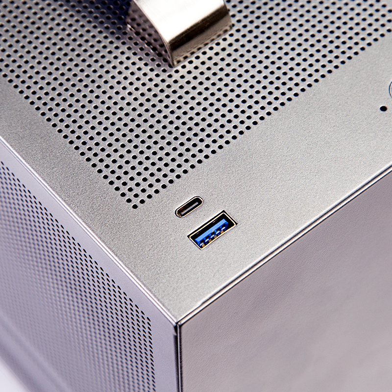 蜂鸟i1100 PRO 机箱,升级精密网孔散热, 三面均采用精密网孔设计,有效提升机箱散热。机箱顶部采用皮质便携提手,机身仅重2.7KG、配备TYPE-C接口(TYPE-C版本) 其他方面,机身尺寸为308x128x190mm,支持SFX电源,显卡长度<300mm,CPU散热器限高60mm,采用300mm长度(48mm宽度)显卡,可以兼容2.5寸SSD固态硬盘,采用180mm短显卡时,可以兼容3.5寸机械硬盘