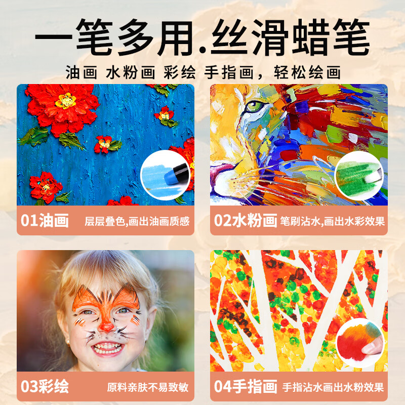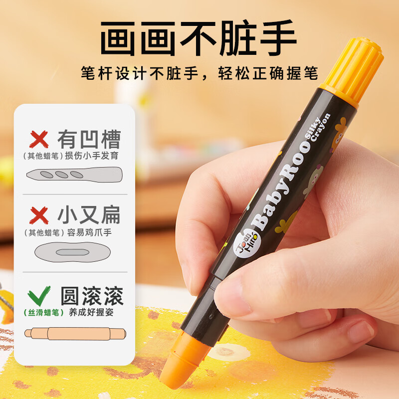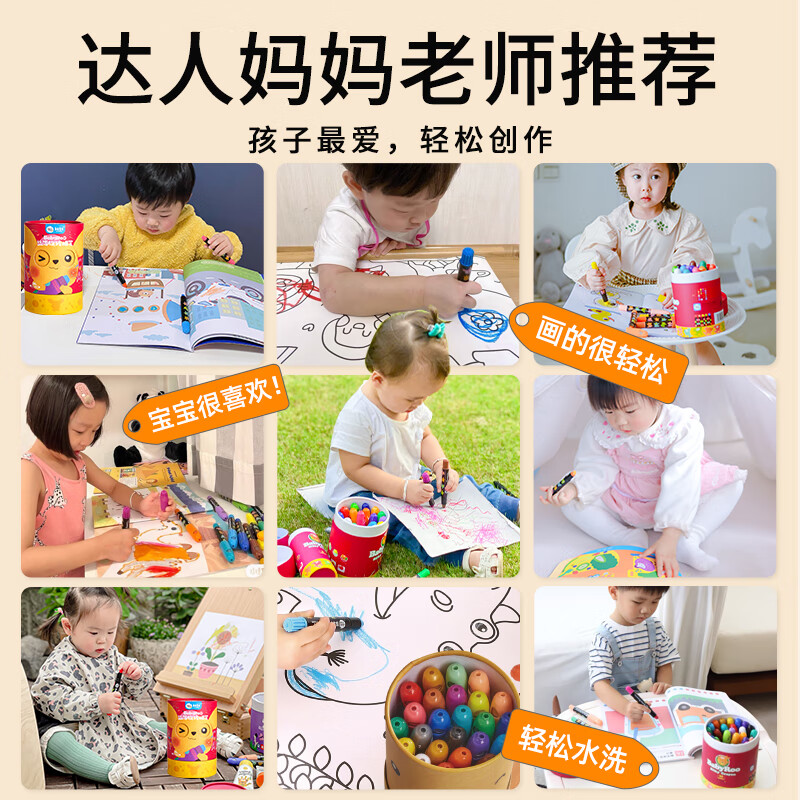 来自聚友“暗黑恐龙”的推荐:“美乐出品的丝滑旋转蜡笔,带旋转笔杆,不宜折断,小朋友也别易弄脏手。最大的好处是蜡笔划到身上或布料上很容易洗掉,手上更是水冲即掉。蜡笔使用面霜技术,使用顺滑,颜色鲜艳。”这套24色蜡笔,颜色丰富而且数量合理,不多不少,恰到好处,收纳罐很可爱,也很方便携带。