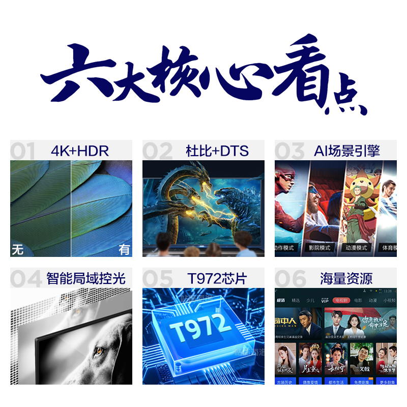 支持手机语音控制,多屏互动,T972芯片,A55四核,1.5GB+8GB内存。