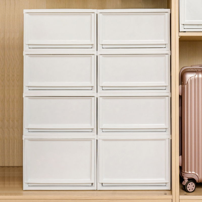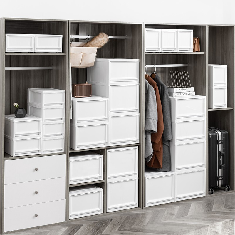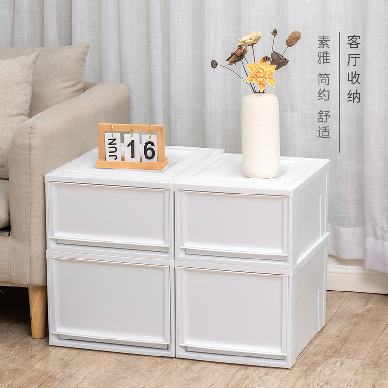 这款采用进口PP、ABS树脂原料,无毒、无异味,纯净度高,无杂质。边角精细处理,做工精致,造型美观,耐磨损。适合收纳各类衣物,箱子可以多个叠放,抽拉方便,也便于衣物分类。