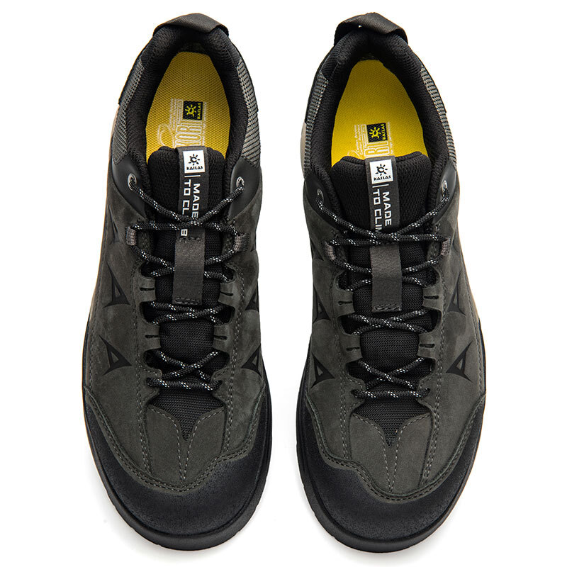 鞋头牛巴皮料上增加胶颗粒印刷,防止撞击破坏皮料,损伤脚趾。鞋面头层牛巴戈面料。Kailas防滑耐磨橡胶底。Eccevai持续回弹科技。KORT鞋垫吸湿排汗,缓冲舒适。GORE-TEX科技袜套,保持双脚持久干爽。