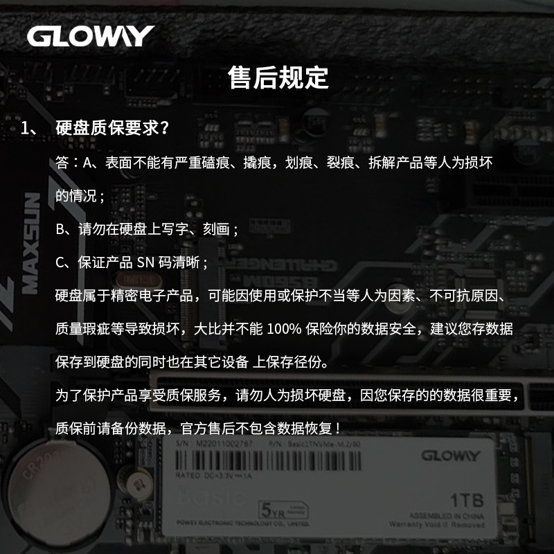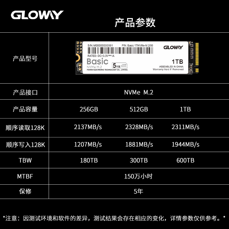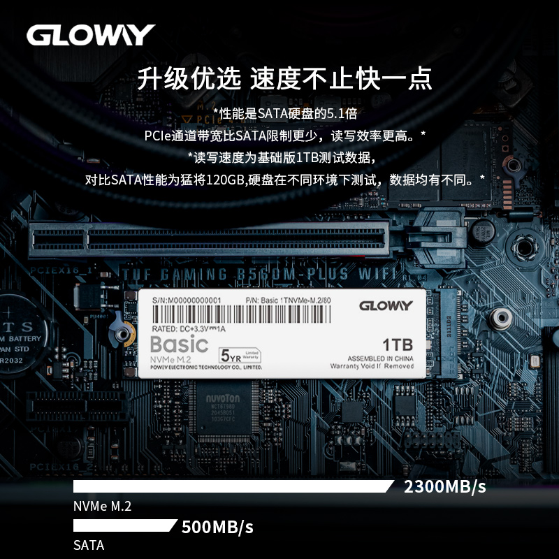 Basic系列 1TB固态硬盘 ,BASIC采用NVMe协议PCle3.0x4传输速度,稳定提升存储速度,有效缩短系统及软件的启动和读写时间。顺序读取速度2335MB/s,顺序写入速度1939MB/s,五年保修。