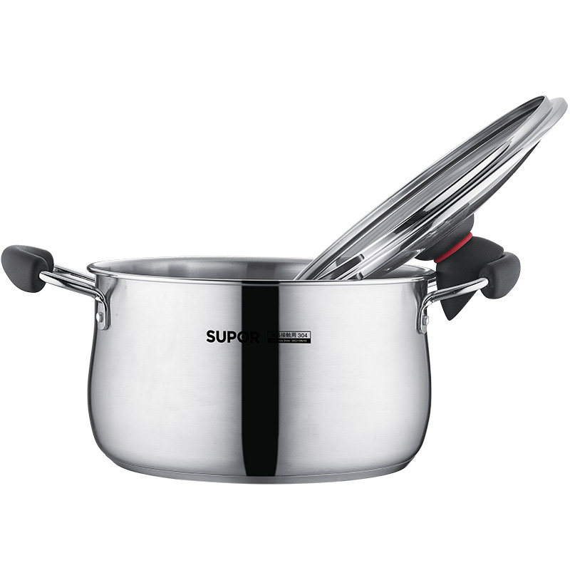 SUPOR 苏泊尔 ST20Z1 不锈钢汤锅 20cm,采用304不锈钢锅身,易清洗,一抹即亮;翻边锅沿设计,顺滑导流,倾倒不滴漏;加高锅身,超大容量,可煮更多食物,适用于电磁炉、煤气炉、电陶炉、电热炉各种灶具,秋季用来煲汤炖肉都是极好的选择~