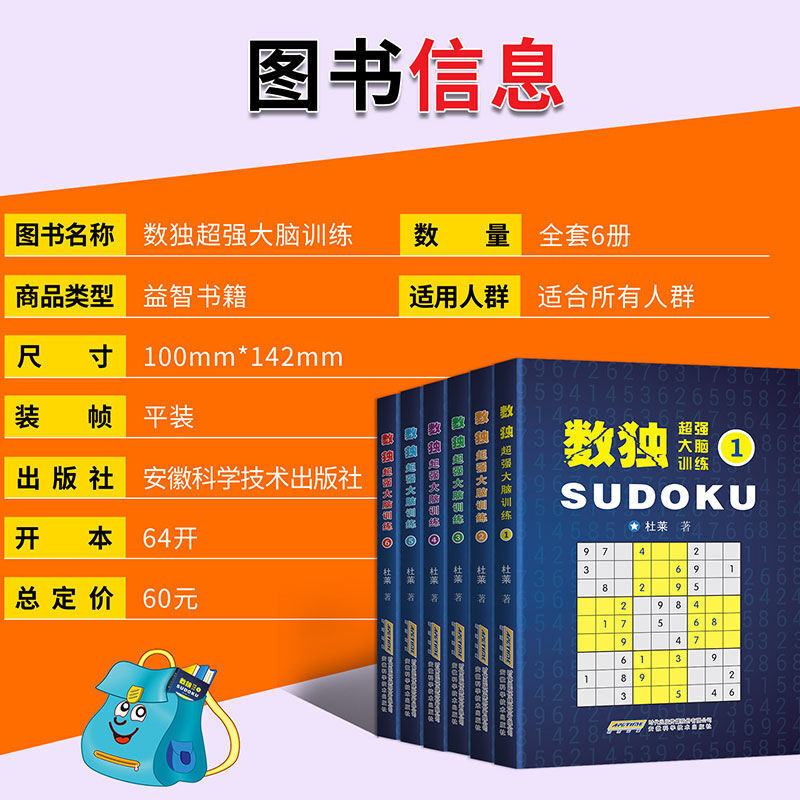 当前的位置: 首页 > 今日值得买 > 【正版包邮】超强大脑训练数独全6册 儿童数独游戏书九宫格数独思维训练题集