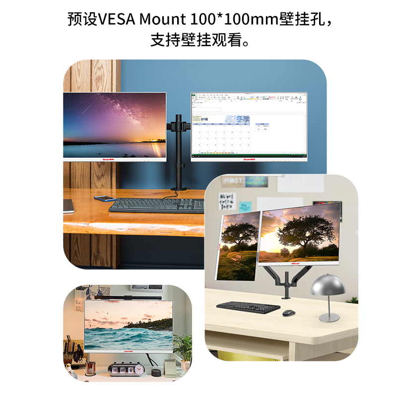 此款显示器采用三边微边框设计,1920*1080分辨率,178°广视角,75Hz刷新率,5000万:1高动态对比度, 72%NTSC色彩范围,还原真实色彩,采用不闪屏和低蓝光屏技术,缓解长时间用眼疲劳。TUV低蓝光产品认证,呵护眼部视觉体验荣获中国节能和环境产品认证,低耗更节能。人性化快拆支架设计,安装、拆解更为方便可更好的适用于移动场景的应用。提供3年质保,售后无忧。