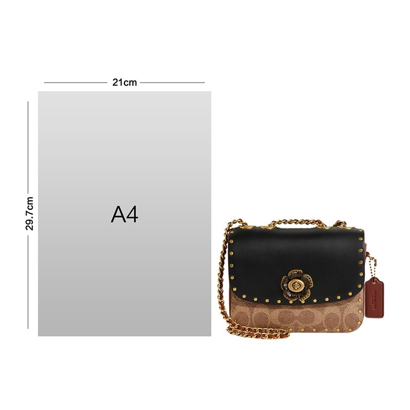 此款 COACH 2021春夏款 MADISON系列山茶花单肩包 C2462 MWQV8,黑色炭灰配色,山茶花经典标志,优雅百搭,尺寸为15.5cm*12.5cm*5cm