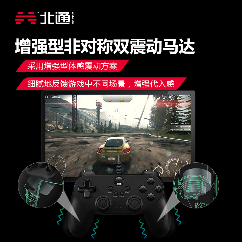此款蝙蝠BTP-BD2E有线手柄,支持多平台操作手柄轻松设配电脑、智能电视、PS3、网络机顶盒。