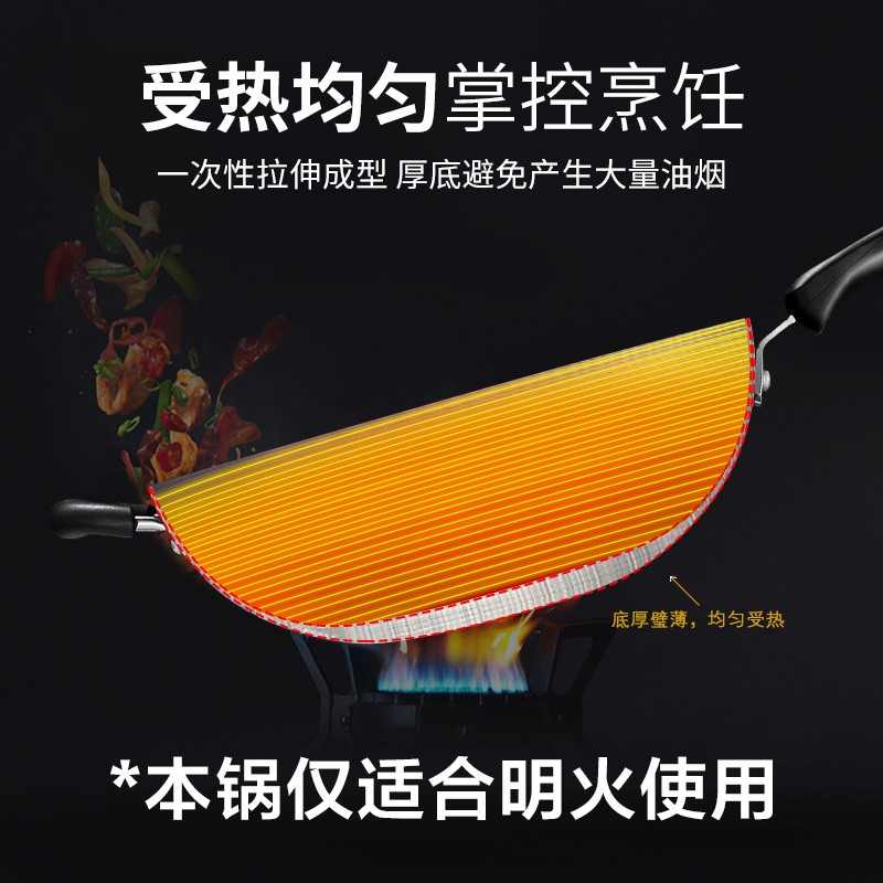 此款炒锅用高纯度精铁基材,经过高温特殊工艺,坚固耐用;表面不含任何涂层,烹饪随心;采用特殊工艺,长时间适用锅面形成油膜,越用越不易粘;厚底避免产生大量油烟,受热均匀,不易焦糊。可立盖节约空间,卫生方便,明火专用。规格:32CM