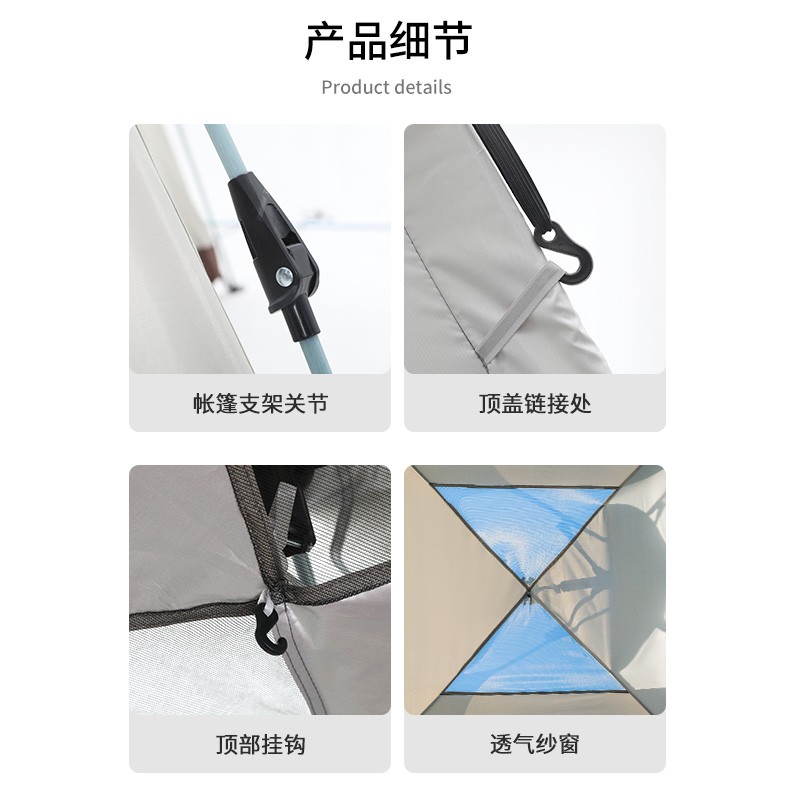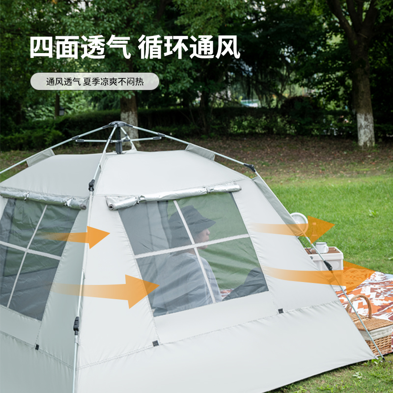 自由客(ZIYOUKE) ZYK-破晓 户外全自动帐篷,采用全自动支架设计,8代液弹支架,一提即开,加大遮阳门厅设计,大大增加遮阳防雨活动空间,前后门厅都可撑开,3-5人加高帐顶,内部大空间,近5㎡的大帐篷,可拆卸顶棚,全封闭防雨设计,有效保护帐内不被雨水侵入。银胶防晒涂层,有效防止紫外线照射,UPF50+。