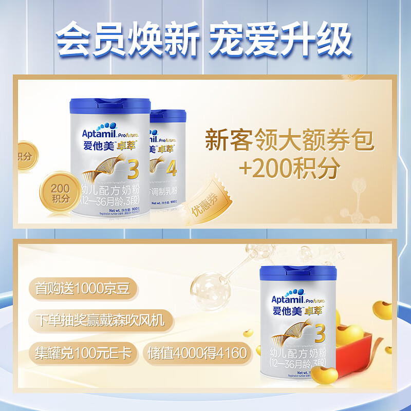 爱他美(Aptamil) 卓萃幼儿配方奶粉(12—36月龄,3段) 900g*3罐