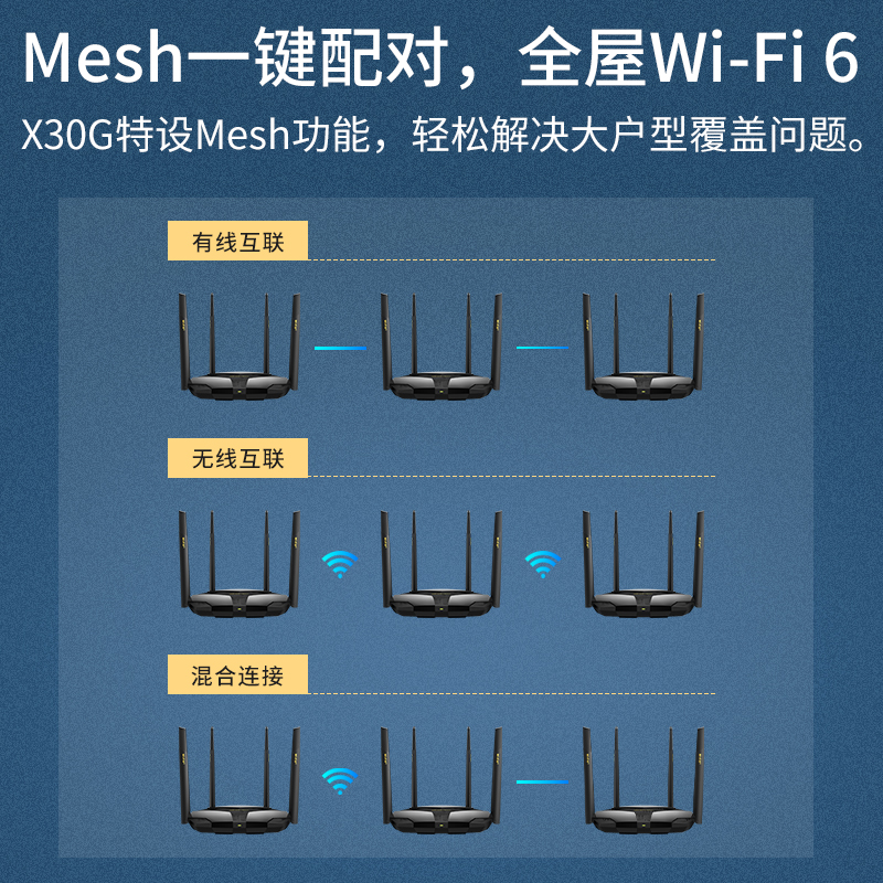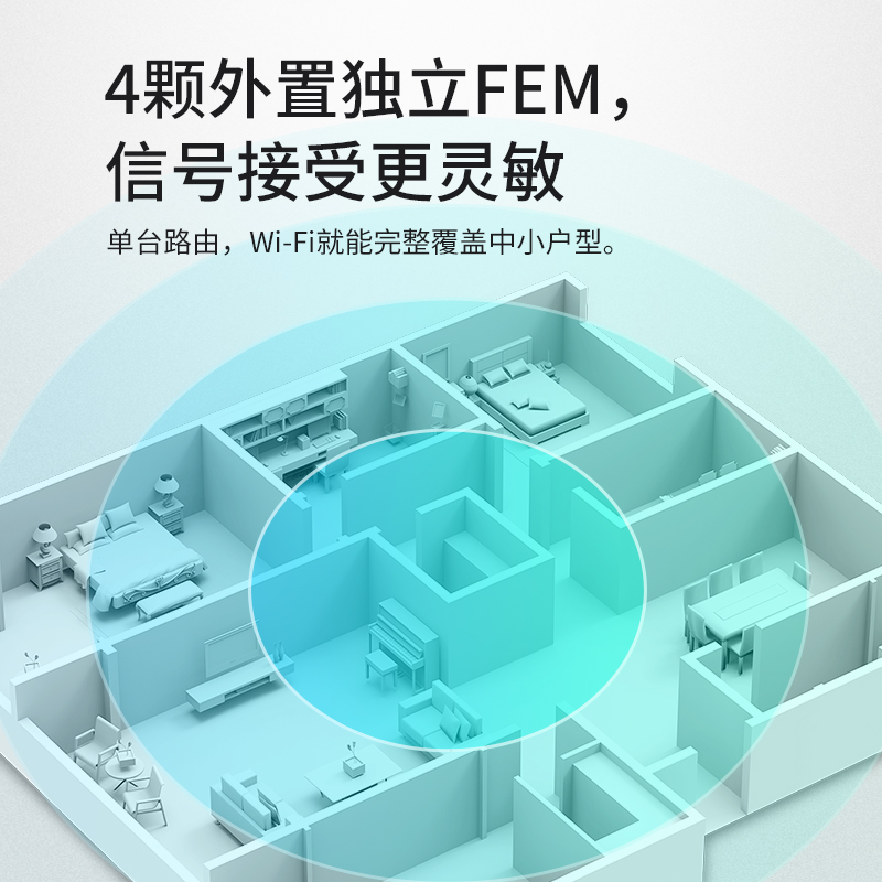 X30G拥有外置独立FEM,弱信号灵敏接收中远距离传输优势显著。单台路由,Wi-Fi就能完整覆盖中小户型。