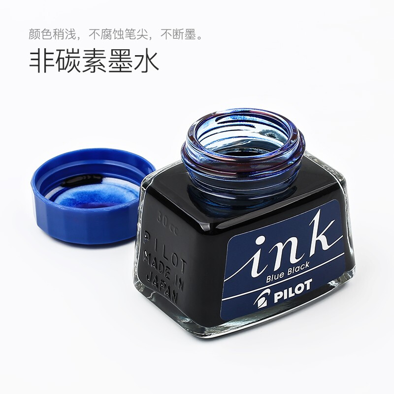 PILOT百乐INK-30非碳素墨水,采用非碳素配方,字迹颜色会较浅,但比起碳素墨水,不易堵笔且不会损害钢笔内部结构,抗晕染效果也很不错。采用纳米技术,色泽较为鲜艳,书写流利,不晕色,不染色。有红、蓝、黑、蓝黑四色可选。规格30ml。