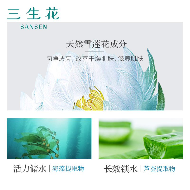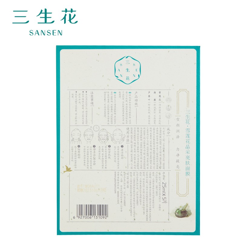 百雀羚(PEHCHAOLIN)是来自上海百雀羚日用化学有限公司旗下护肤品牌,始于1931年,其明星产品包括水能量系列,水嫩精纯系列,经典护肤脂等。三生花面膜系列有主打补水的山茶花款、主打紧致的金盏花款、主打舒缓的栀子花款、主打提亮的雪莲花款、主打滋养的水仙花款以及主打柔滑的兰花款等。成分天然,柔润养肤,自然贴合,多种肤质适用。