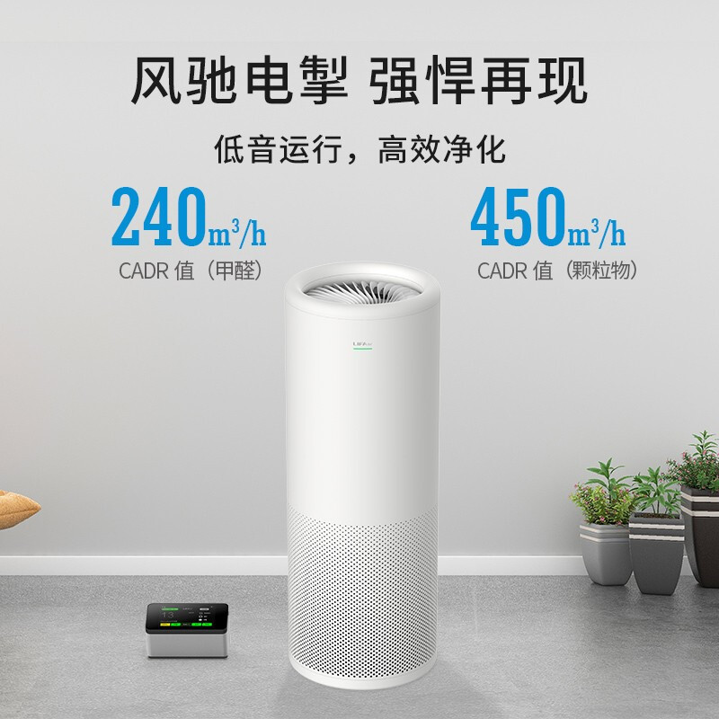 LIFAair LA500具备超强的除醛除霾能力,采用双组并联复合滤芯,内含初滤网、特制防酸活性炭层和H12级HEPA滤芯。满填3.5公斤活性炭颗粒,高效去除甲醛;滤芯展开面积高达4.6㎡,适合大空间净化,颗粒物和甲醛CADR值分别达到450 m3/h和240 m3/h,只需18分钟即可净化全屋空气。独家使用分体式设计的独立监测控制器,根据当前监测器所处环境的空气质量,智能运行净化空气。独特典雅的北欧外观,为屋内环境增添简约设计风。LIFAair LA500采用日本NIDEC独家提供的直流无刷电机,超高能效,搭配顶部格栅漩涡出风。