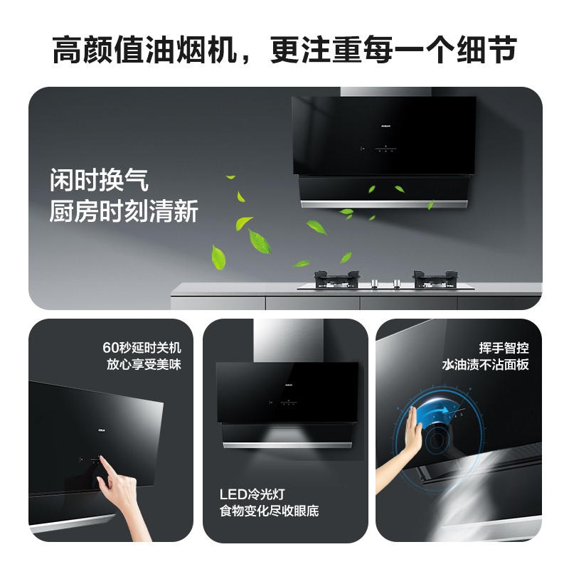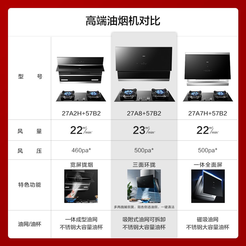 老板(Robam )27A8+57B2T 侧吸油烟机灶具烟灶套装家用三面玲珑挥手智控抽油烟机燃气灶套装(天然气),采用不锈钢双层风梭净畅网以及出色的油烟分离技术,加强马力防倒灌,高效拢吸速排烟。方便拆洗,1级能效。