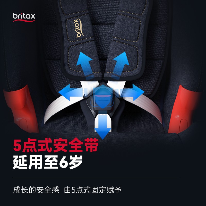 一代5点式安全带和车载安全带容易卡到一起,二代优化了这个问题。适用于9个月-12岁宝宝。