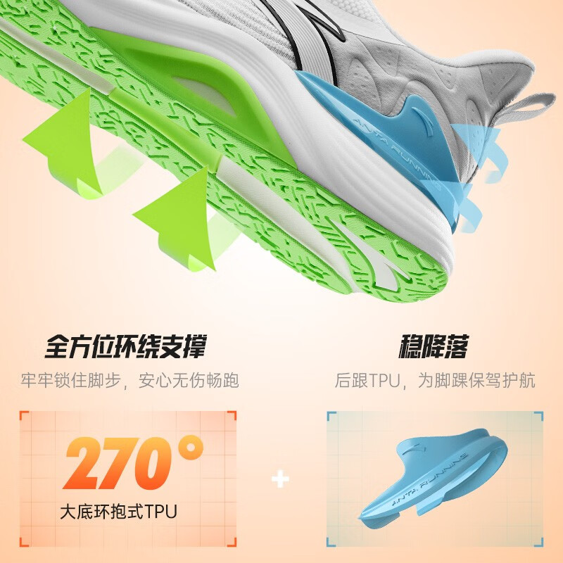 ANTA 安踏 创2.5 男款跑鞋,致力于“无短板”跑鞋系统,打造真正的六边形战士,搭载A-TRON SYSTYM 创系统,虫洞科技中底,恰到好处的缓震性和回弹性,自适应后跟TPU,有效防止翻转,稳定降落避免运动带来伤害,A-WEB帮面材料,增加透气性。