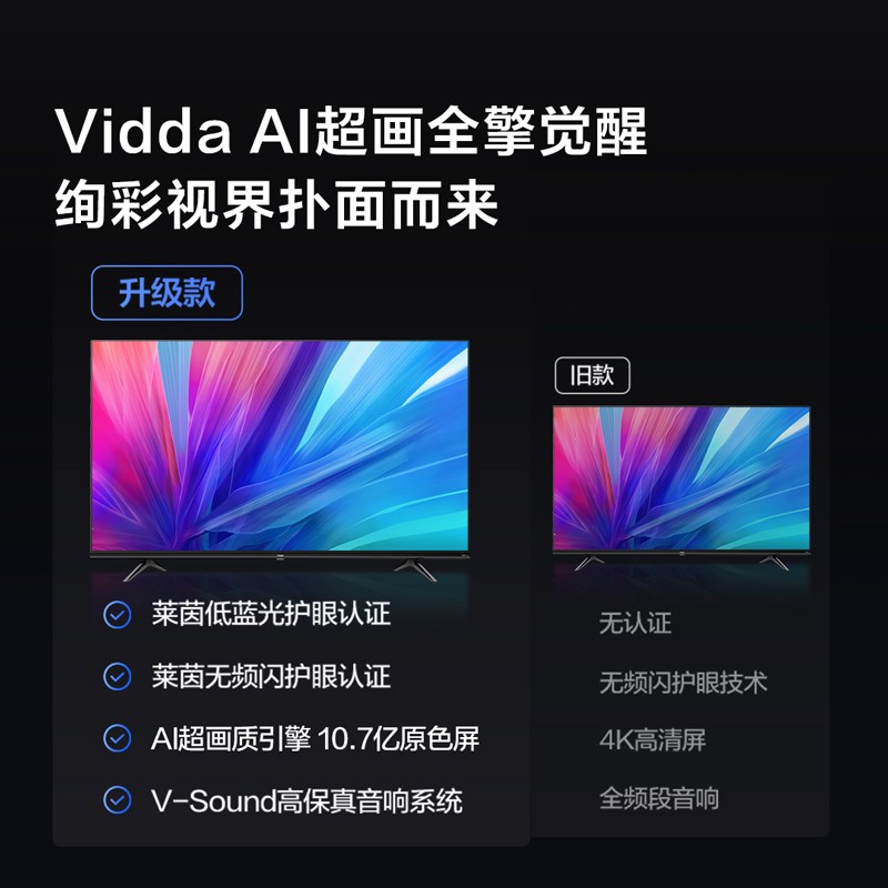 当前的位置: 首页 > 今日值得买 > 海信 Vidda 55V1F-R 55英寸 4K超高清 超薄电视 全面屏电视 智慧屏 1.5G+8G 游戏巨幕智能液晶电视以旧换新