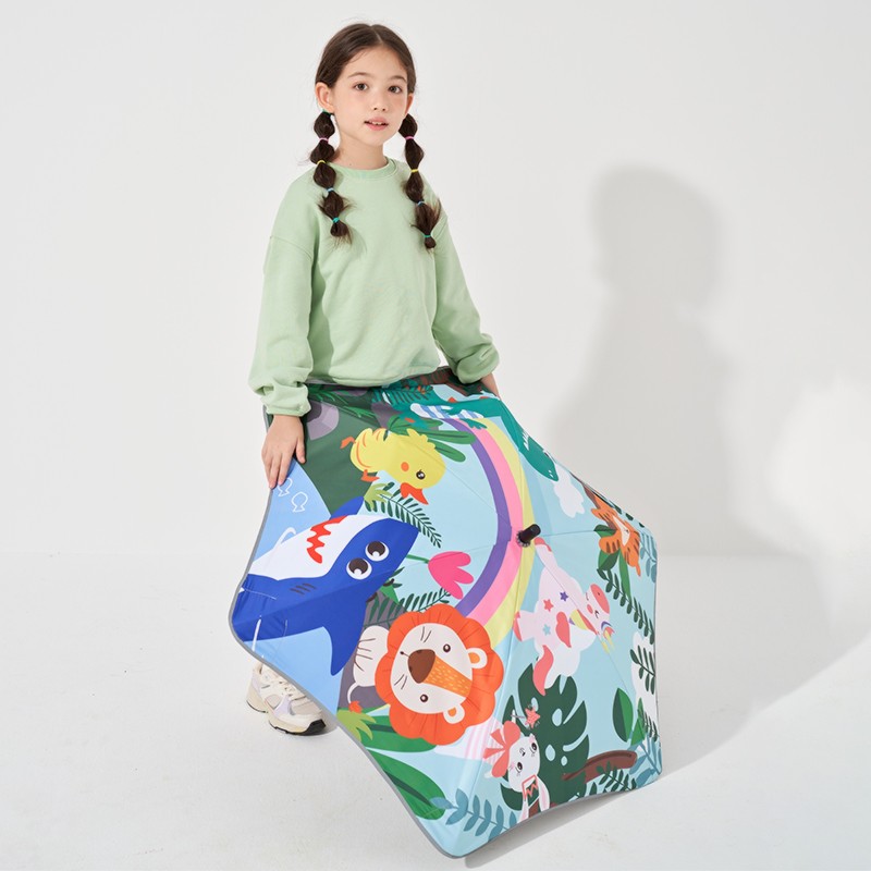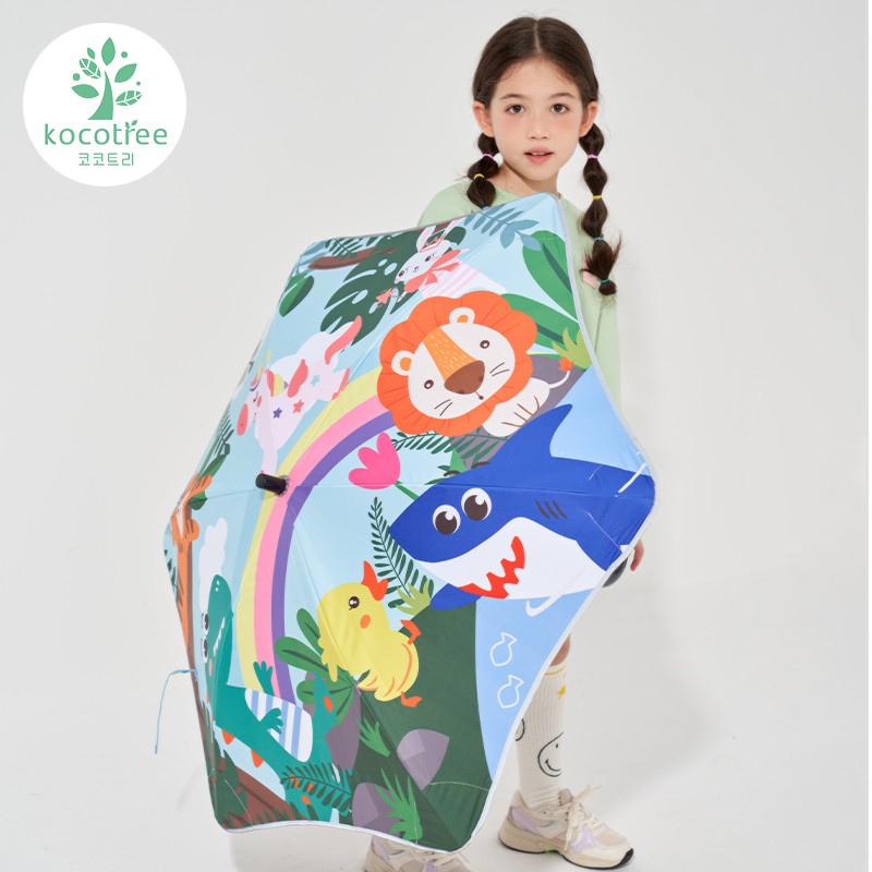这款kocotree kk树 儿童晴雨两用伞,纳米防水涂层,黑胶防晒涂层,防夹手隐藏式按钮开关,雨边带安全反光条,夜间反关更安全。高密荷氏拒水,防雨水渗透。