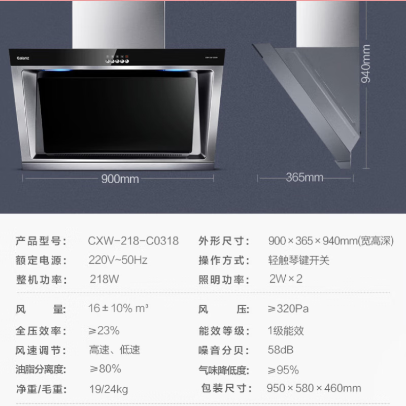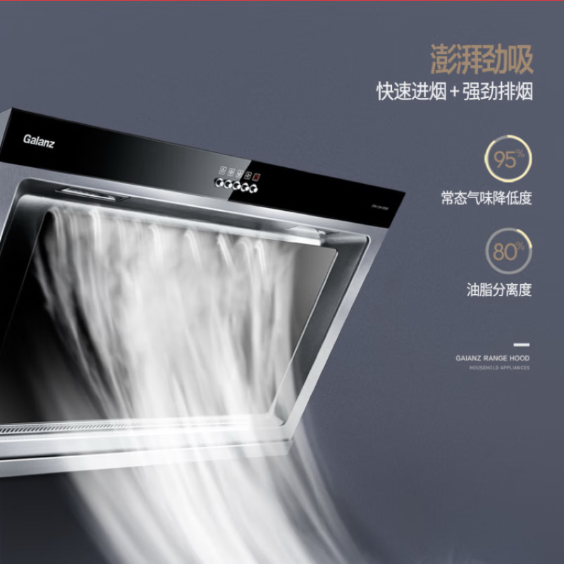 320Pa大风压,排烟更顺畅,无惧公共烟道倒灌,排烟快人一步。16立方米/分钟大吸力,快速进烟+强劲排烟。回型进风结构,多方位环吸油烟,四维立体净烟油烟一网打尽。全封闭纯铜电机动力持久,高转速,运行稳定,噪音低。900mm宽屏进风口,下置式叶轮 离烟源更近,吸烟速度快。高度油脂分离,有效减少拆洗次数、 降低清洁难度,厨房清新。一级能效节能环保,油脂分离度高,有效过滤有害颗粒,保持空气清新。