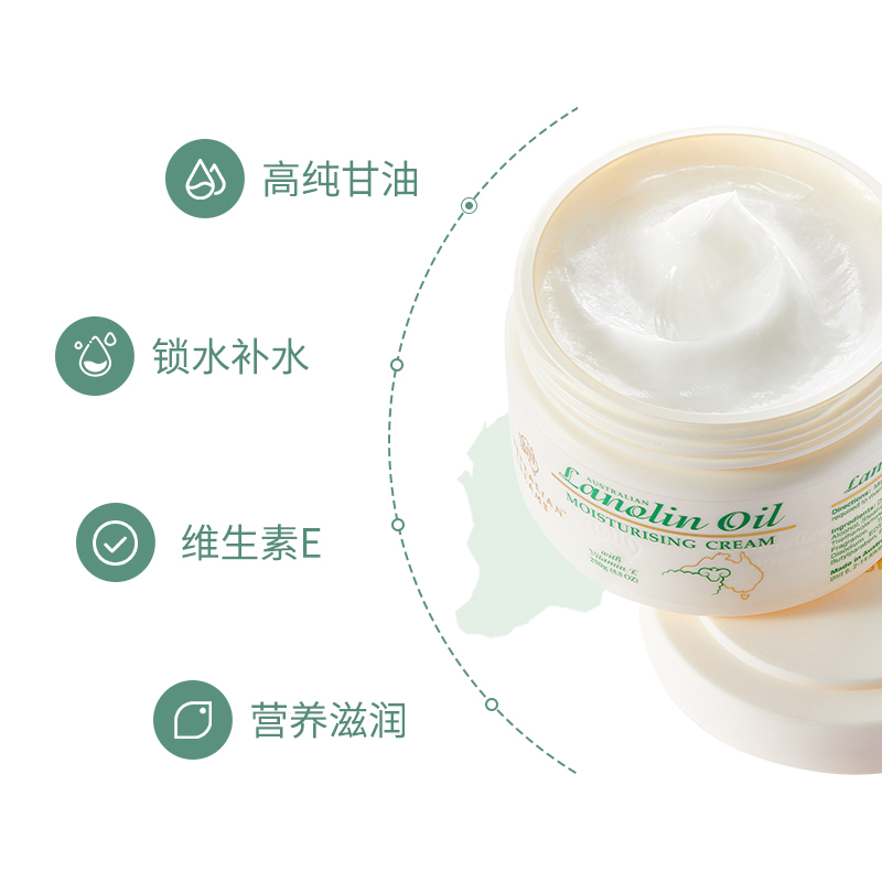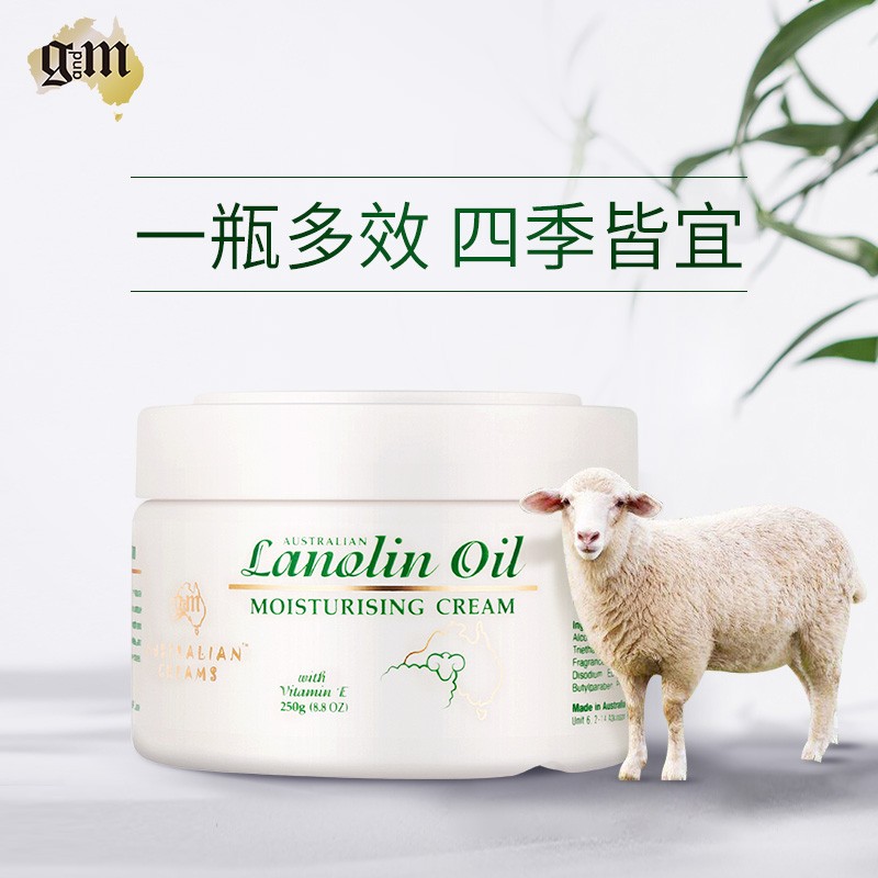 G&M是澳洲药房里的老牌绵羊油品牌,性价比非常高,是口碑较好的平价秋冬滋润型的护肤品,绵羊脂中使用天然羊毛中的羊毛脂精华,对面部形成天然锁水膜,保湿效果比较强,内含维生素E,对避免秋冬脸部脱皮现象比较有效果,滋润性不错但不会很油腻,整体使用感受还是不错的。规格:250g
