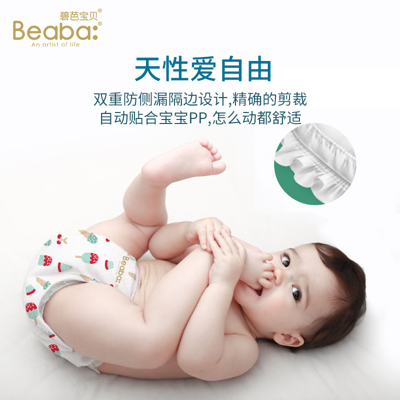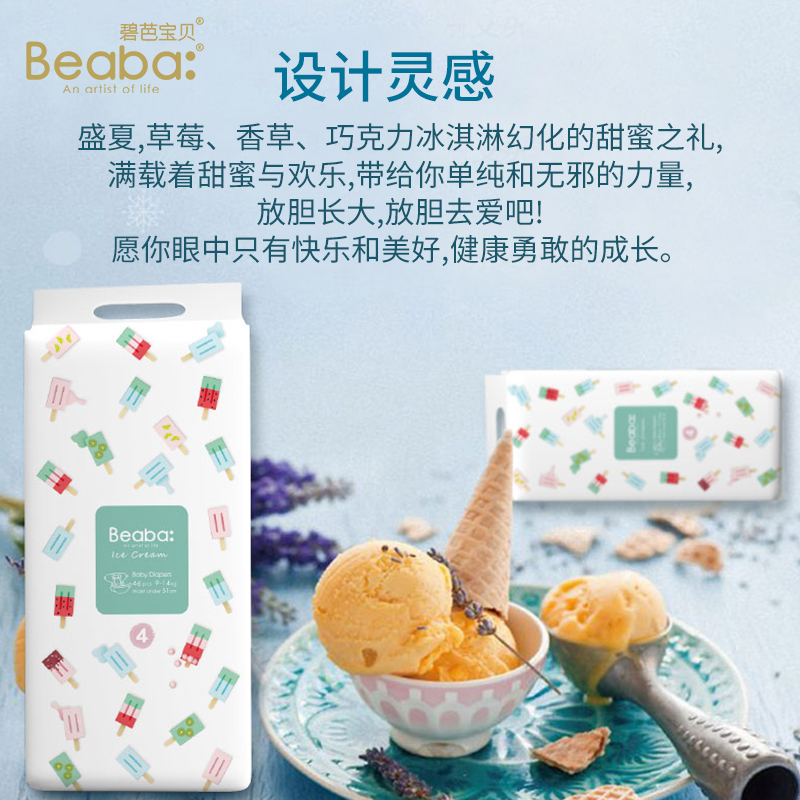 BEABA冰淇淋系列,婴儿超薄透气干爽拉拉裤,0.2cm纤薄,干爽透气,快速吸收缩水,双重防侧漏隔边设计裁剪,自动贴合宝宝PP,智能尿显,贴心提醒。