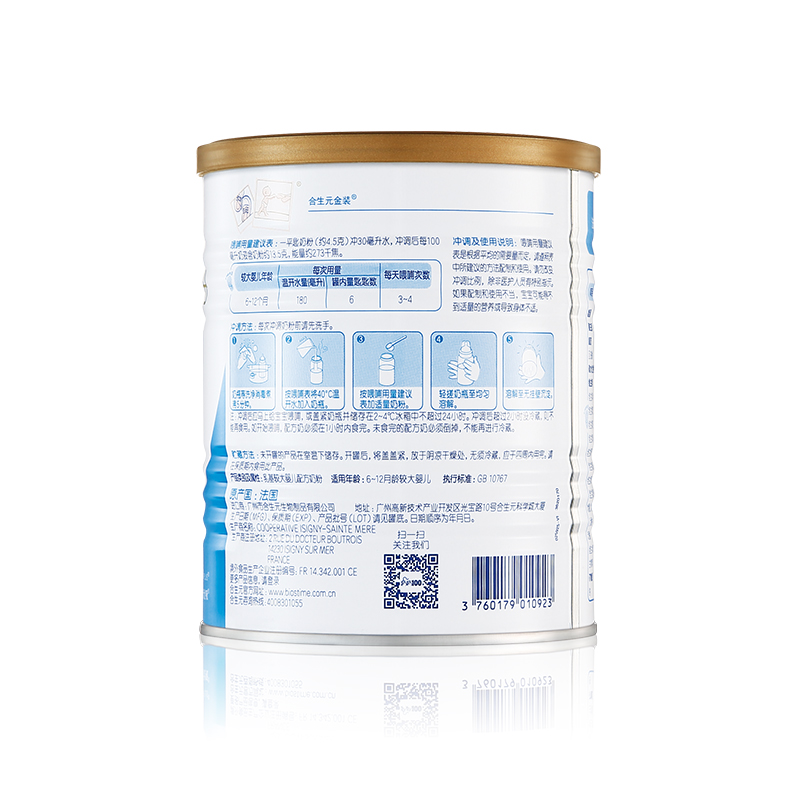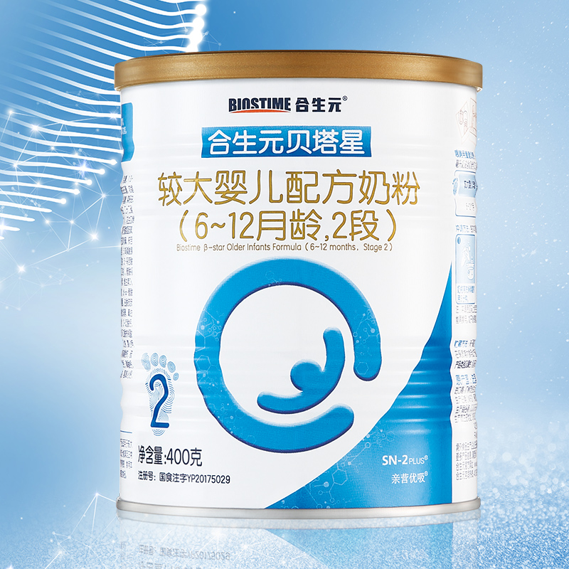 BIOSTIME 合生元 金装 较大婴儿配方奶粉,其特有的β位脂肪酸组成,消化时不会形成钙皂因而不易产生便秘,让宝宝更好地吸收钙和能量。GOS益生元有效保护肠道,促进营养地消化,有助于宝宝减少便秘和增强保护力。α-乳清蛋白,易消化吸收,增加食欲,提高免疫力。核苷酸增强免疫力和改善肠道。牛磺酸有助脂肪吸收。全配方喷雾干燥技术营养更易溶解,宝宝吸收更好。
