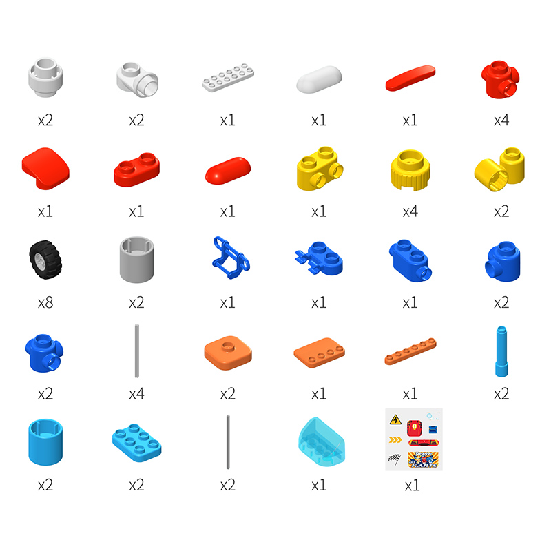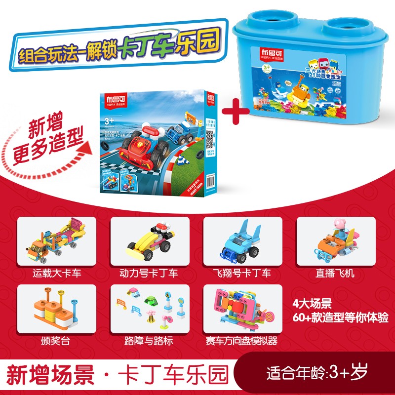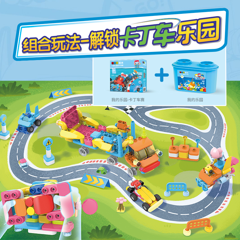 布鲁可创造大师系列80111我的乐园-卡丁车赛场景包内含有8个小轮胎零件,可以拼插出两台卡丁车,结合我的乐园积木桶,可以组合成为卡丁车乐园场景,拼搭为运载大卡车、赛车方向盘模拟器、飞越障碍等多种组合。该套组采用多彩大颗粒设计,能够帮助宝宝认知形状和颜色,拼搭的同时学习一定的交通知识;颗粒边角圆润无毛刺,宝宝拼搭过程中不易伤手。