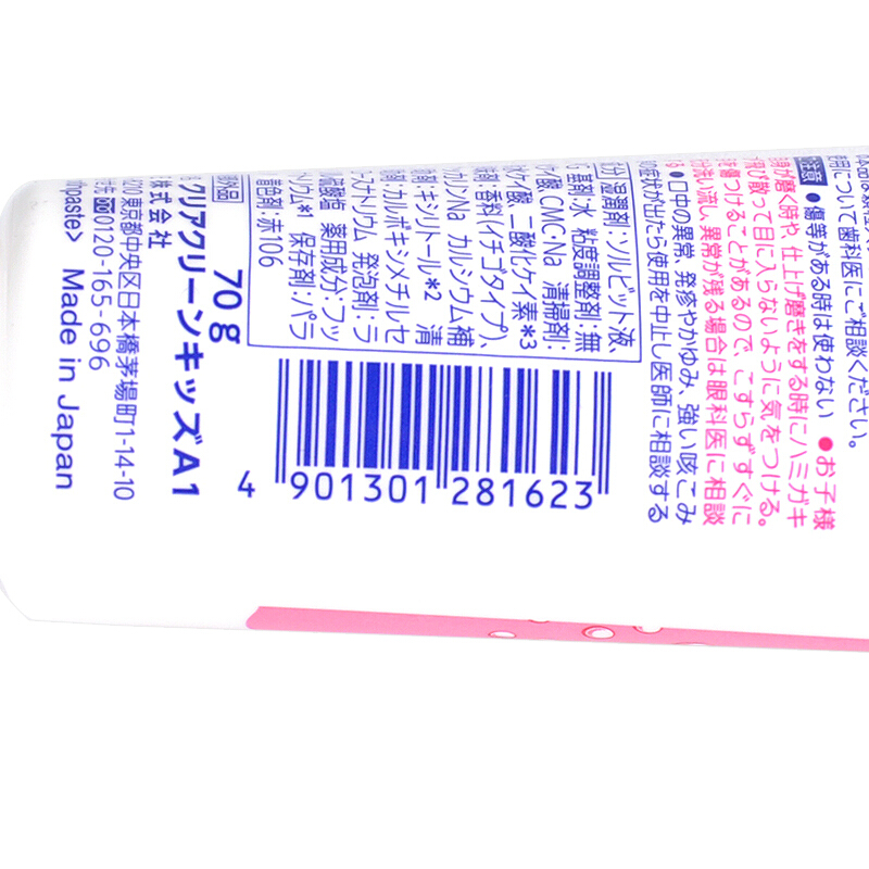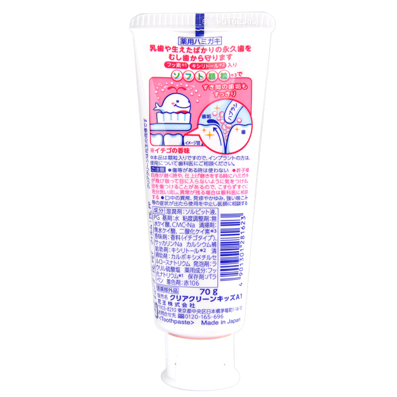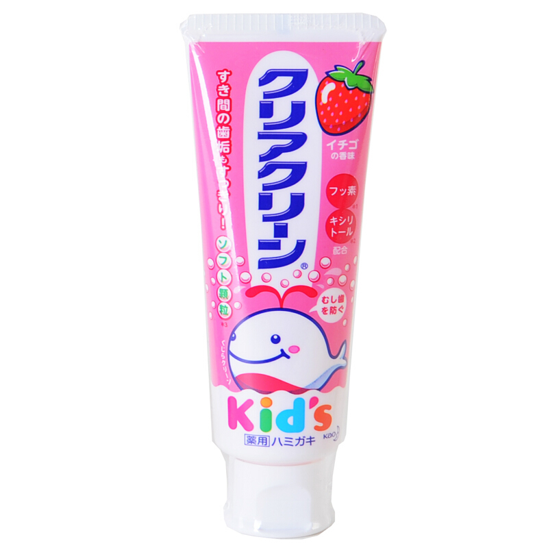 kao花王是日本著名的日用品品牌。此款儿童牙膏,采用无氟配方,天然材质研制而成,安全可吞咽。超精细膏体颗粒,特别针对孩子发育中的牙齿,添加木糖醇,有效去除牙垢并预防龋齿,清新水果味,适合2岁以上的儿童。规格:70g。