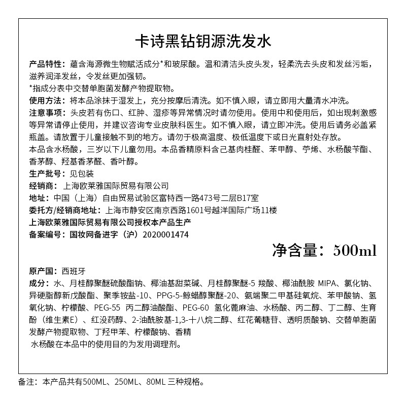 这款黑钻钥源洗发水这是法国高端洗护品牌KÉRASTASE(卡诗)的得意之作——黑钻洗发水,以含有多种珍贵护发成分闻名。尤其是“海源微生”奇迹精粹和玻尿酸复合精粹,能深度密集滋养头发,让受损发丝更加强韧、顺滑。护发效果很直观,头发柔韧有弹性,而且还有很漂亮的光泽感。隔天,发根依然蓬松清爽,不用刻意吹造型,就充满空气感。