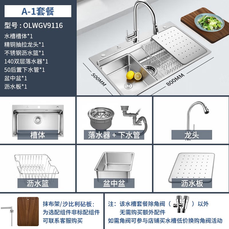 欧琳创建于1995年8月,是一家专业从事高档橱柜、不锈钢水槽、厨房电器等厨房产品设计、生产及销售的国际化集团公司。此款采用拉伸工艺做出手工槽效果,可水平移动,洗 、切、沥一站搞定,台上、台中、台下三种安装方式可选,台上初装换新都简单,台中工艺要求高,清洁方便,好打理,不易结污垢。1.0MM加厚钢板,精钢拉丝不粘油。升级50后置下水,贴墙设计,扩大槽下70%空间,40cm自由拉伸龙头,清洗更彻底。实心重力球,松手精准回位。大口径双层落水器,快速落水拒绝堵塞。防凝露涂层,防止水汽凝结。