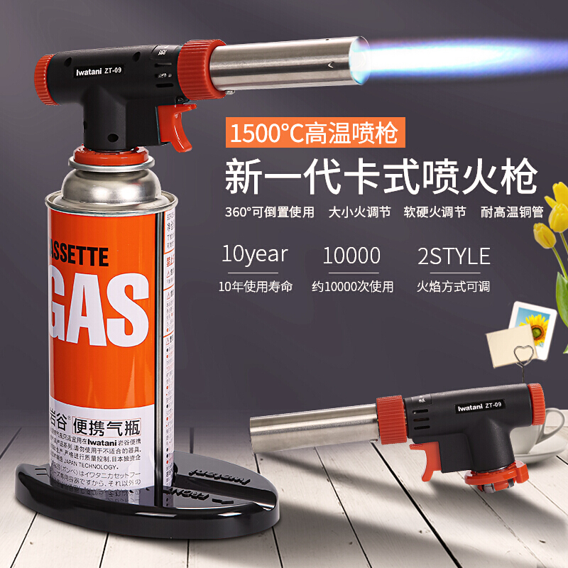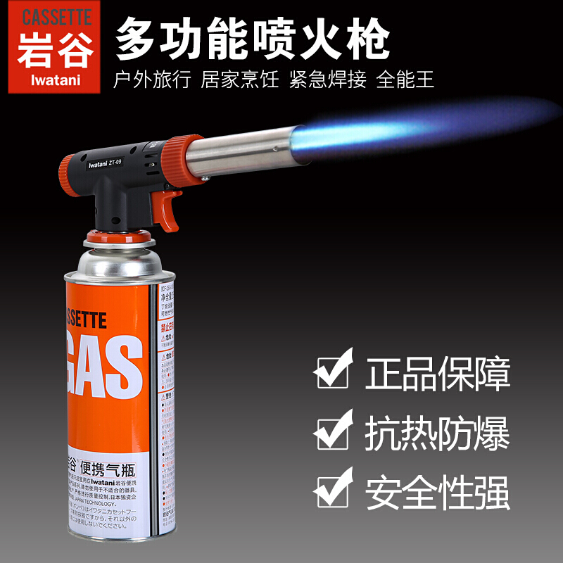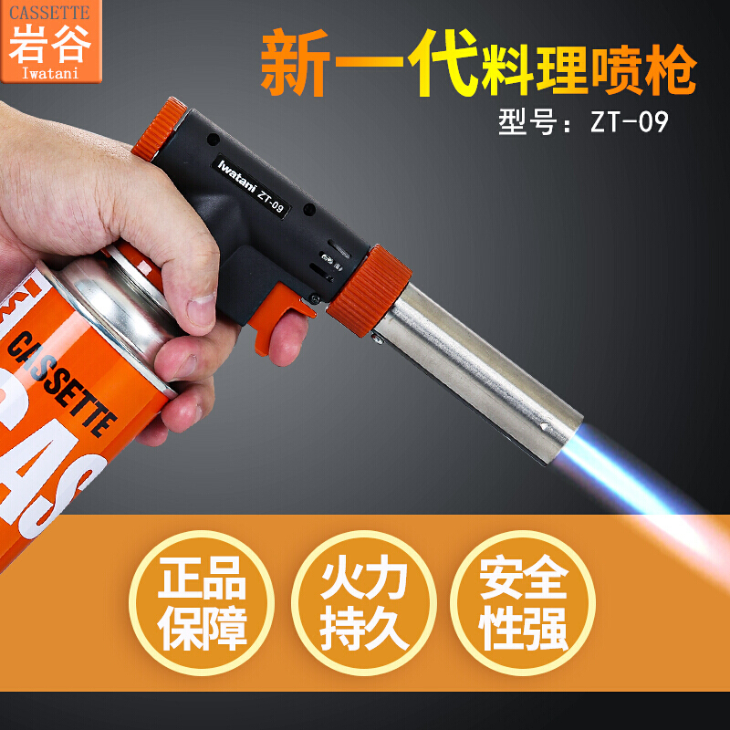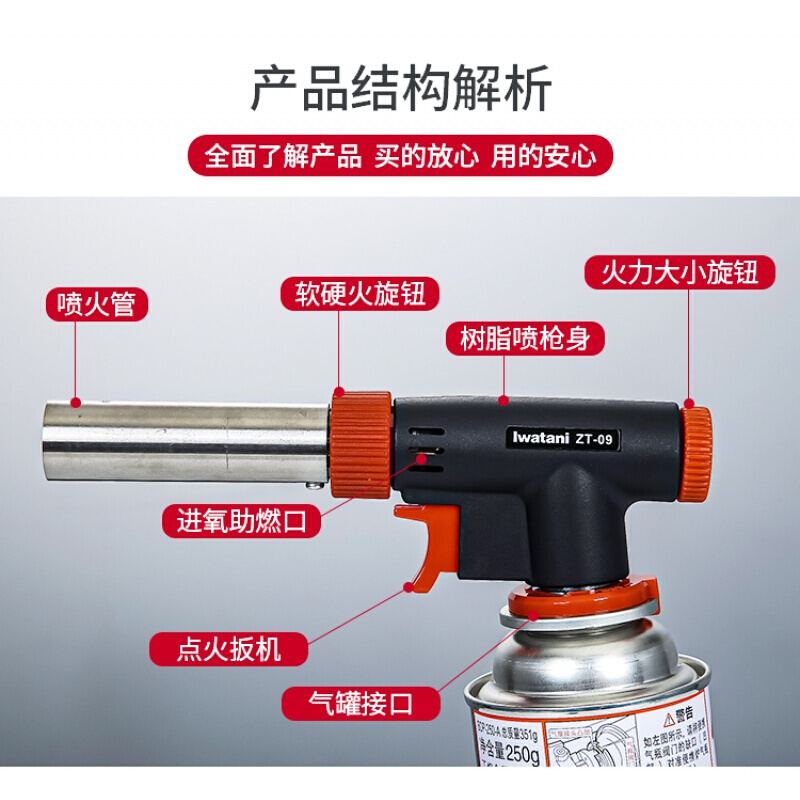 Iwatani 岩谷 ZT-09 料理便携喷枪,1.85KW火力,瞬时高温,火力可调节,2瓶250g原装大容量气,重量354g/瓶,方便携带安全可靠。烧猪毛猪皮去腥,家中必备良器。户外、料理、烧烤、烘焙均可。