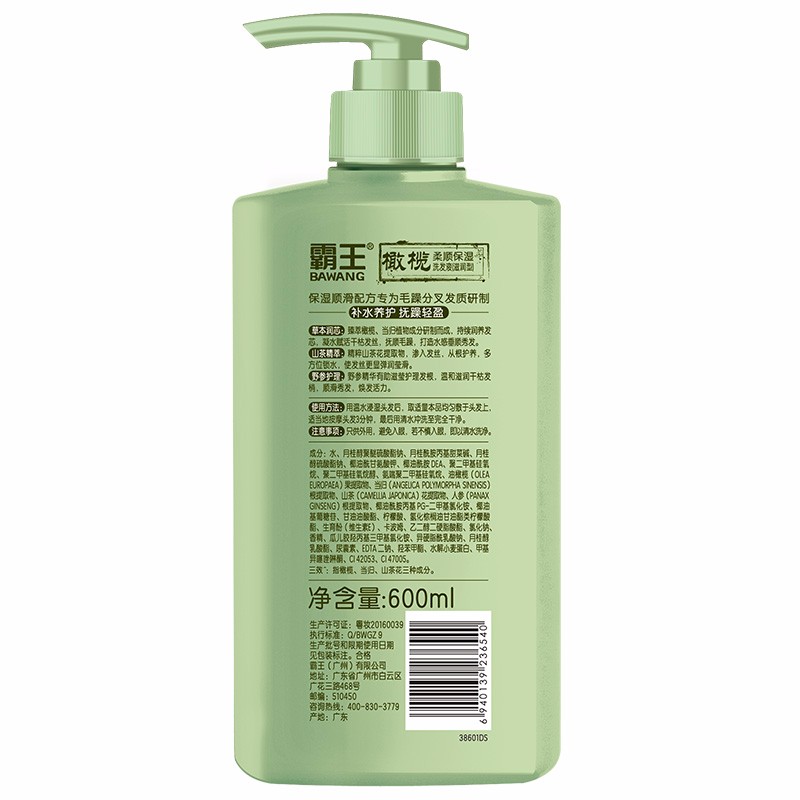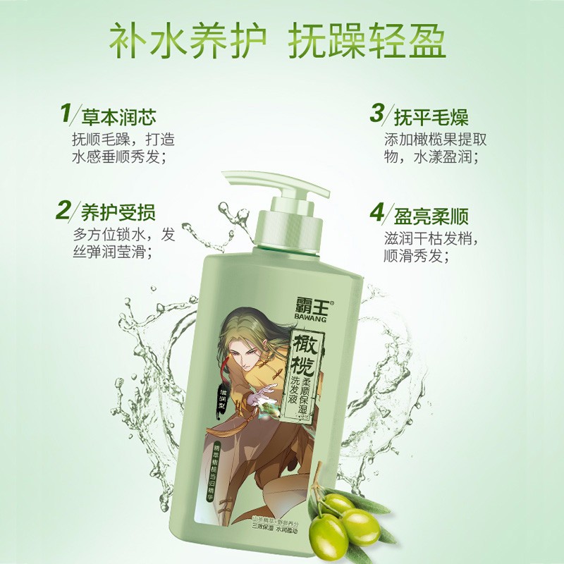 这款BAWANG 霸王 小药精Q萌系列 橄榄柔顺保湿洗发液 600ml 温和滋润干枯发梢,顺滑秀发,润养发芯,凝水赋活干枯发丝。