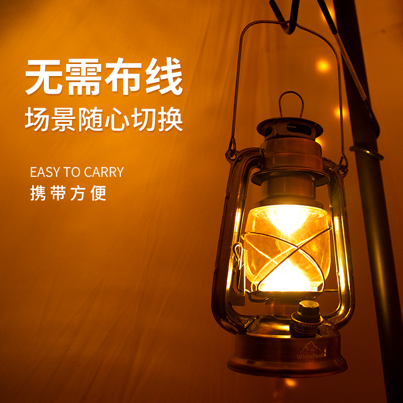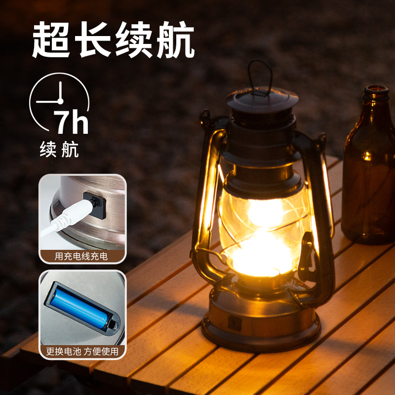 旋转式开关,无极调光,光随心动,可充电,也可直插充电线打开马灯,多一种选择,户外多一种安心,可提可挂帐篷,总有一种方式适合你需要的户外。