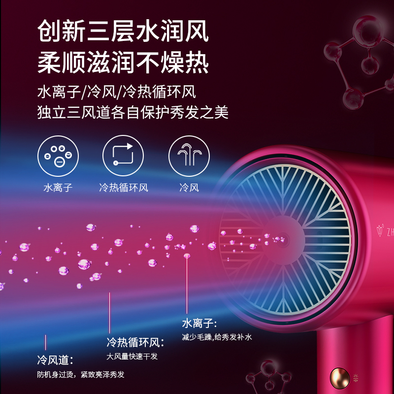 这款zhibai 直白 HL5系列 电吹风,拥有1800W大功率,干发快速,吹干头发无需过久时间;负离子+水离子滋润发芯,有效抚平毛躁,带来更好的护发效果;三道科学送风,活润秀发,吹发更舒适;支持NTC智能控温,冷暖使用都合适,金属触感按键,手感极佳。