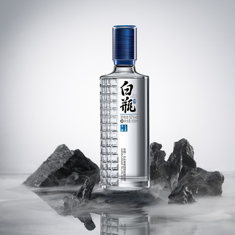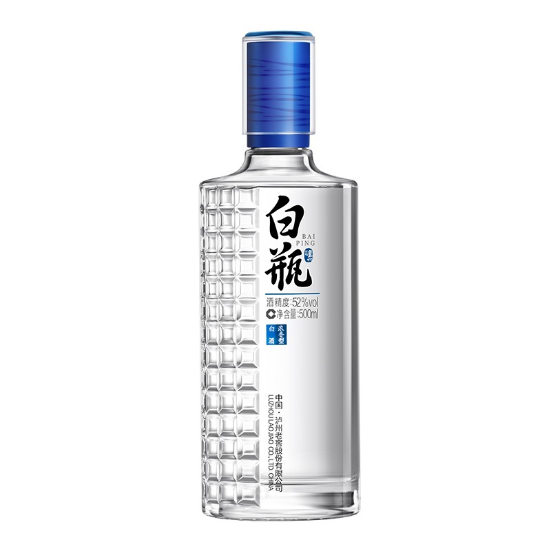 泸州老窖白瓶是泸州老窖股份有限公司旗下的一款中端无包装浓香型白酒,是由水、高粱、小麦酿造而成,是一款展示不束于形,轻装简行,以质立品,醇香可鉴,赤诚以待,回馈初心理念,让白酒回归它原本的模样,让生活也回归原本的模样的白瓶白酒。这款白酒产于北纬28度中国白酒金三角核心腹地,采用川南优质高粱,被泸州老窖窖泥特有的丰富微生物充分滋润,采用三十三代酿酒人口传心悟的传承技艺,在恒温恒湿的贮藏岁月里抚平烈酒的棱角,产生细腻柔和,自热生香的天然美酒。