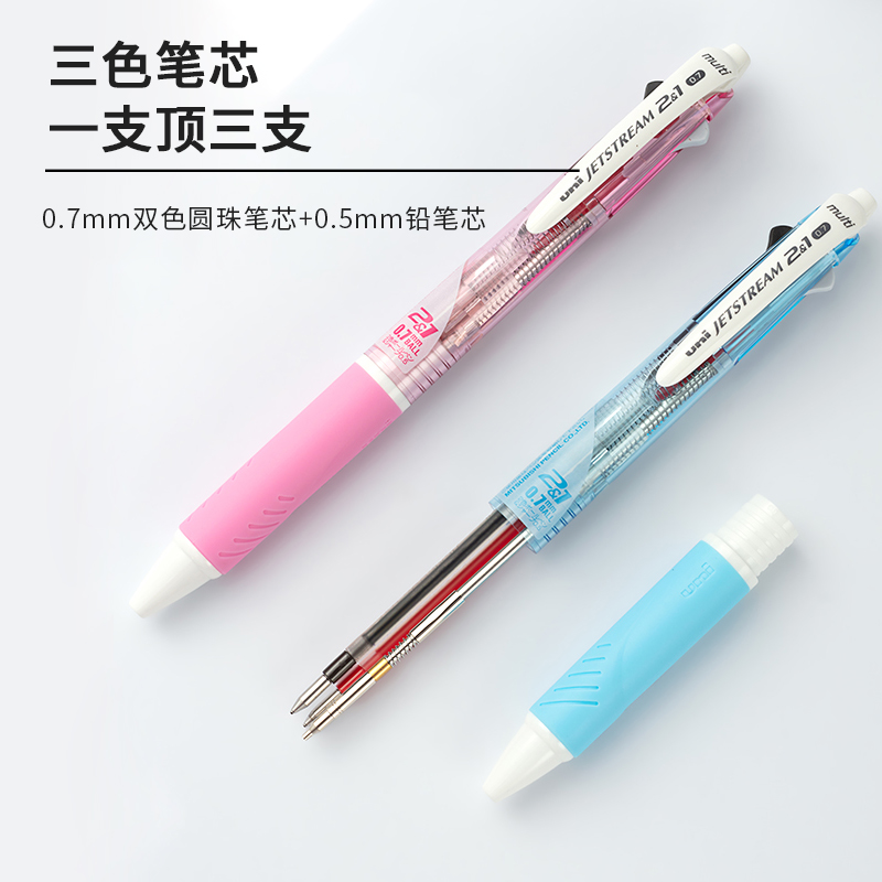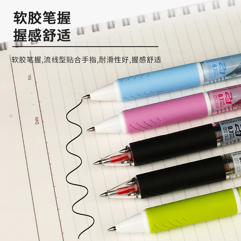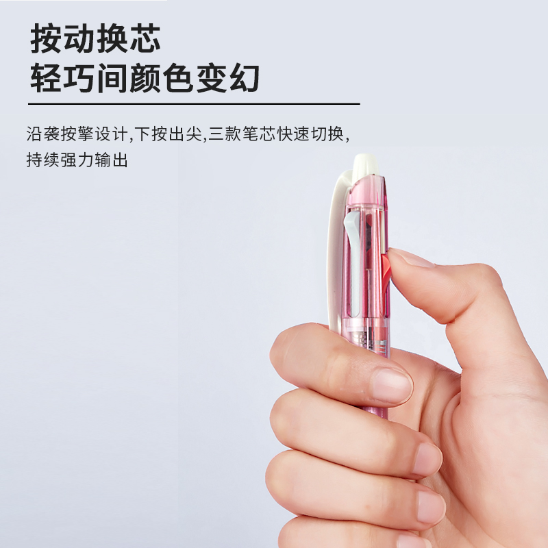 笔杆设计简单大方,色彩清新,原子笔采用研制墨液(集颜料及染料墨液于一身)可减低笔嘴与纸张表面的摩擦,令书写流畅且颜色鲜艳。书写后,墨液易干,不会弄污字体或手。