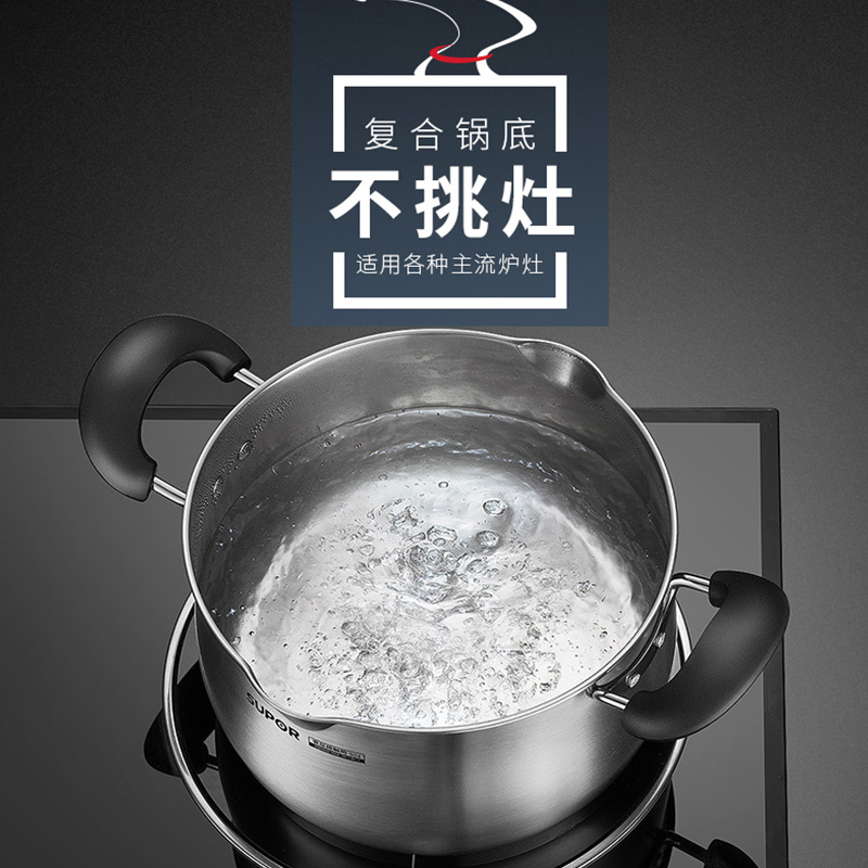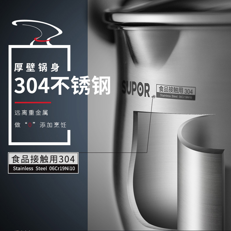 采用304不锈钢材质,安全健康,以清洗,可视钢化玻璃盖,方便观察不易碎,人体力学手柄,使用舒适,省力防烫,一次成型单锅底。适合 1-2人,适用于明火、电磁炉。