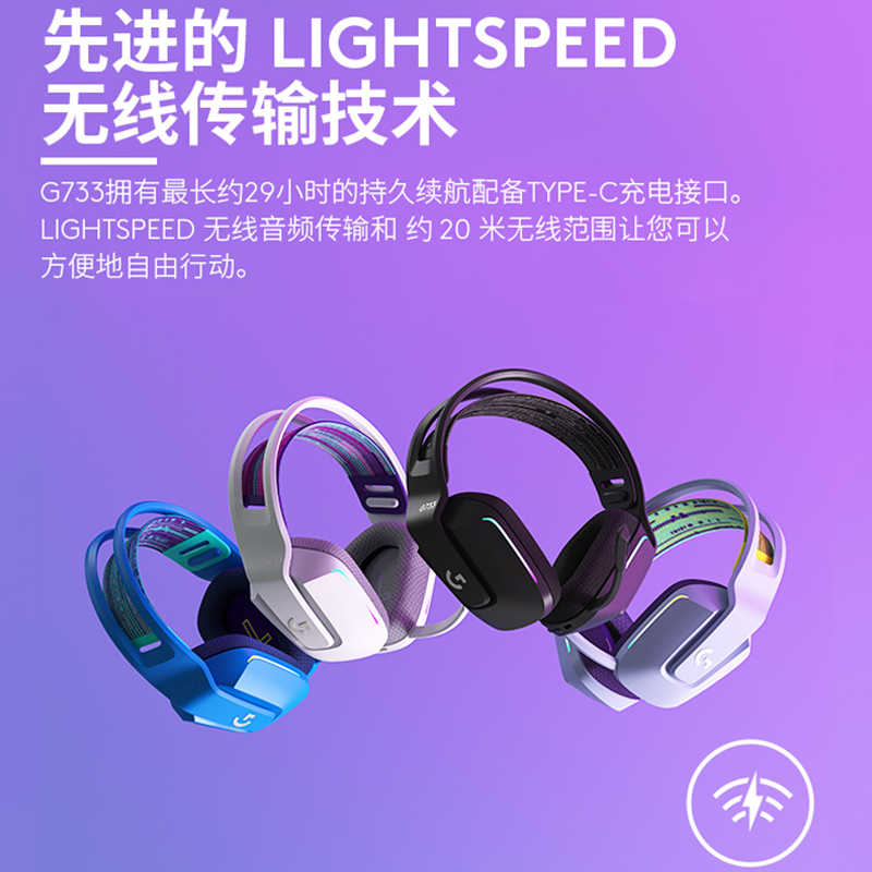 罗技(Logitech)这款游戏耳机麦克风,拥有29小时持久续航,同时配备Type-C接口。LIGHTSPEED无线传输技术,可在20米无线范围自由行动。搭载DTS Headphone:X 2.0,7.1环绕声技术,音频清晰度高。BLUE VOCE技术,提供无延迟语音。
