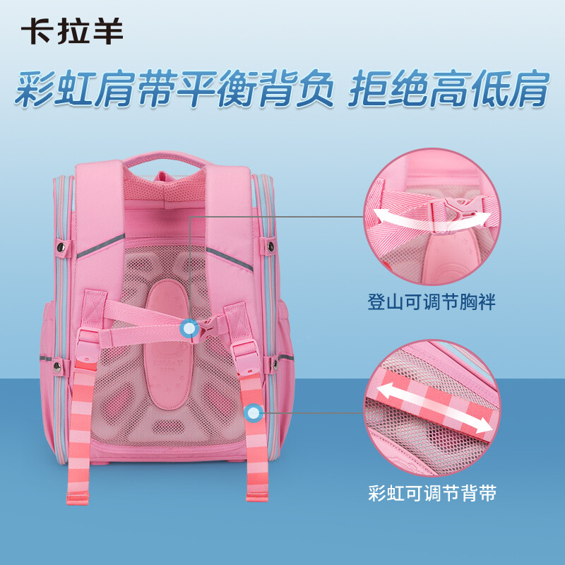 Carany 卡拉羊 追光系列 儿童双肩背包 5维减负护脊款,升级抑菌里布,加倍防护,一体式结构容易折叠,方便存放,节省空间;侧边插扣同时能避免背包全部打开,放心背负。