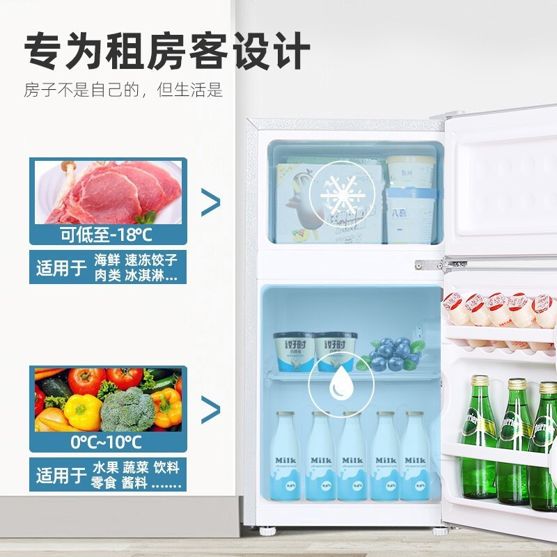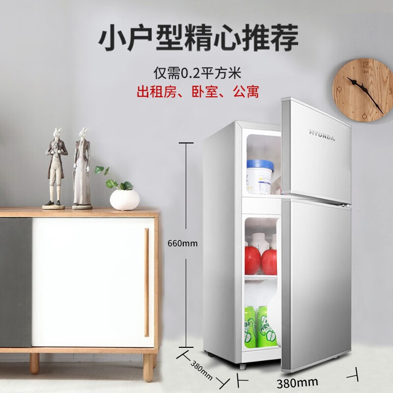 仅需0.2平方米 出租房、卧室、客厅、厨房,迅速制冷,强劲动力,给食物储存很好的动力保障,七档温控调节,HPS健康材质,37dB安静守护睡眠,不挑环境运行自如 低温补偿保鲜全年。