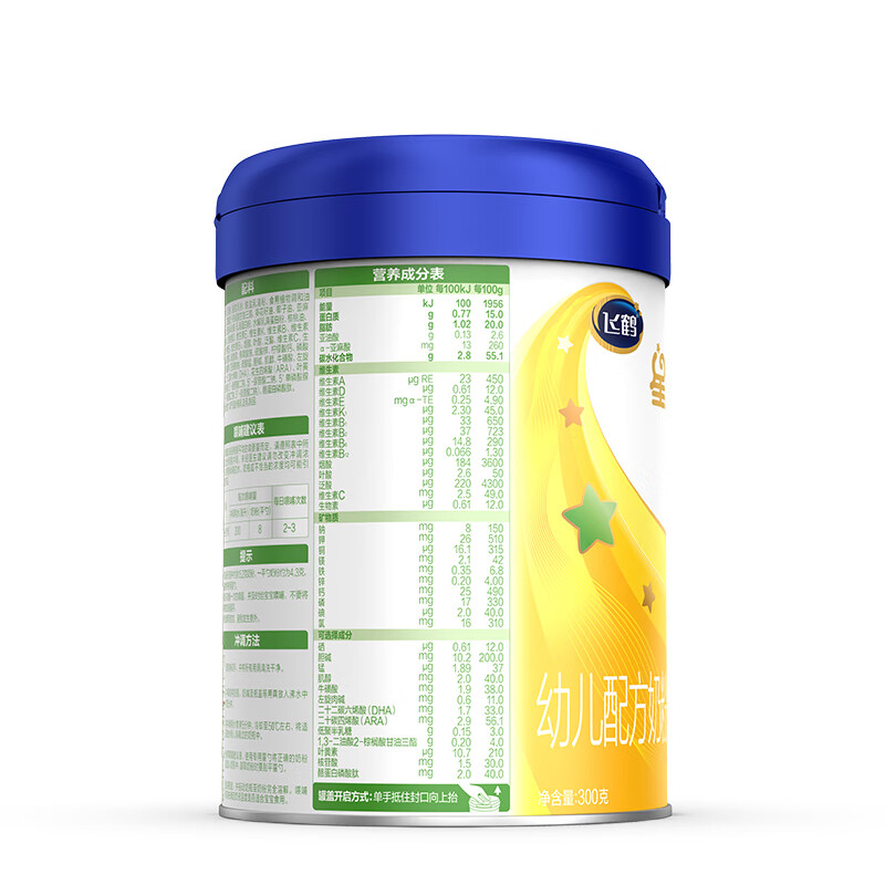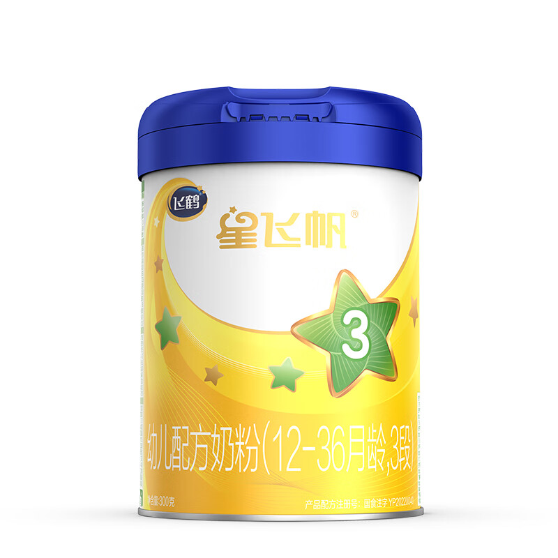 飞鹤奶粉是国内比较早期的奶粉企业,自家专属牧场,北纬47°黄金奶源产地,奶粉更适合中国宝宝体质。星飞帆 婴幼儿奶粉 3段 300g,包装新升级,延续天然入职营养,含OPO珍稀结构脂,生牛乳成分,水解乳清蛋白,不含香精蔗糖,适合12-36个月宝宝。