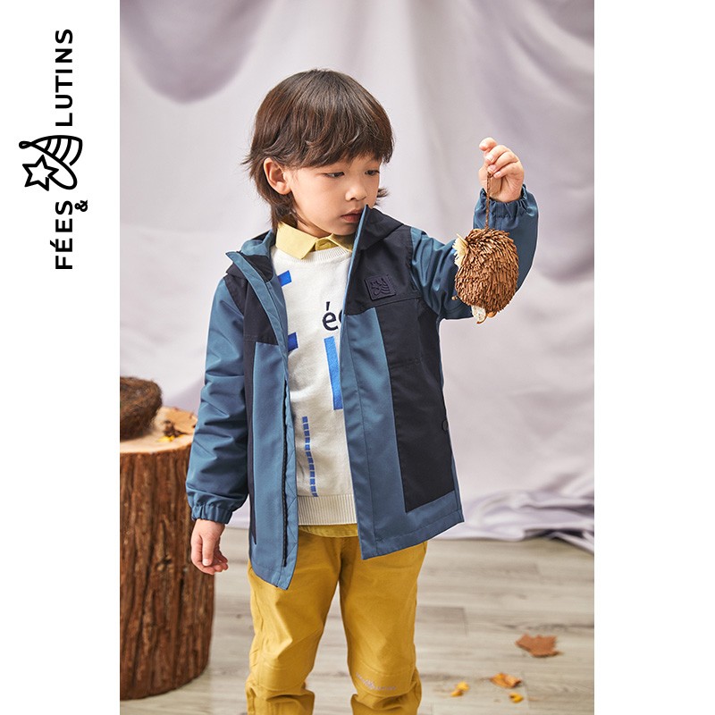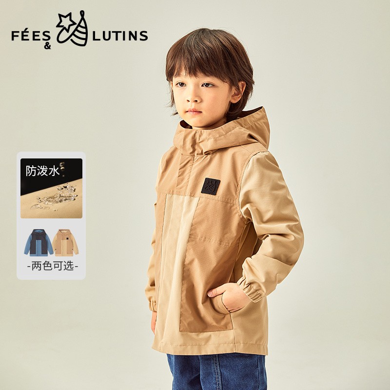 Fees&lutins 菲丝路汀 男童风衣外套,涤纶贴膜面料,舒适柔软,防风保暖,厚实挺括;高拉链门襟,小巧别致贴标,松紧袖口,开叉下摆;防泼水面料,不怕细雨,小雪,雾气侵袭,保暖锁温,挺括耐磨。