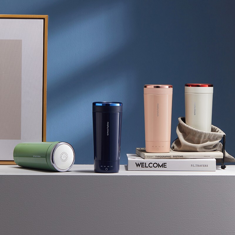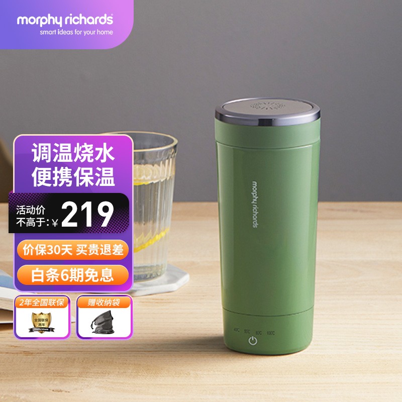 摩飞(MORPHY RICHARDS)这款300ml容量的便携电热水杯重量仅600g,轻巧且方便携带。盖上有70个花瓣透气孔可均匀泄压;杯盖封口处透气膜可自动排出膨胀气压,单向释压不漏水;底部NTC温控可实现±1°C精确控温,动态监测水温。四档温控设计,分别有100℃、80℃、55℃和40℃四档可选,满足不同使用需求。内胆采用食品级316不锈钢材质,耐腐蚀耐高温;外层则选用304不锈钢,双层杯身设计实现防烫。适用于100-240V电压设计,通用多国电压。