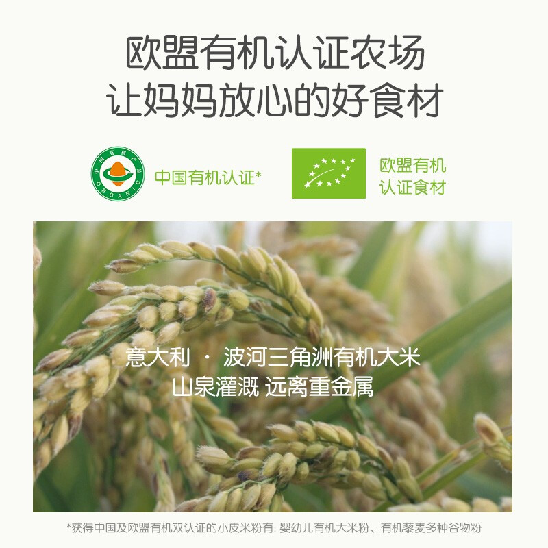 LittleFreddie小皮 婴幼儿大米粉 不添加防腐剂、人工香精,无转基因成分,意大利波河三角洲大米,用纯净山泉水灌溉,浓浓的米香,细腻易消化,是宝宝初次添加辅食不错的选择,适合6个月以上的宝宝食用。